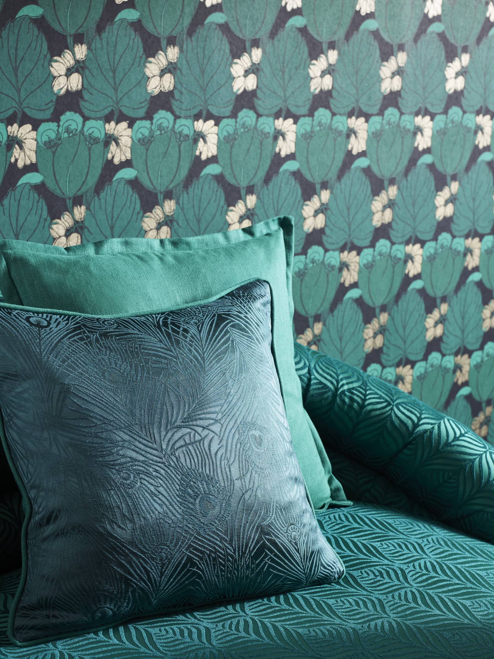 Saturated colour defines the Jade story, with its bold and ultra-decorative tones reminiscent of Japanese and Chinese 19th century artworks and textiles. Carved jade, fine silks and hand-painted wallpapers provide the inspiration for a concise palette of balanced hues.