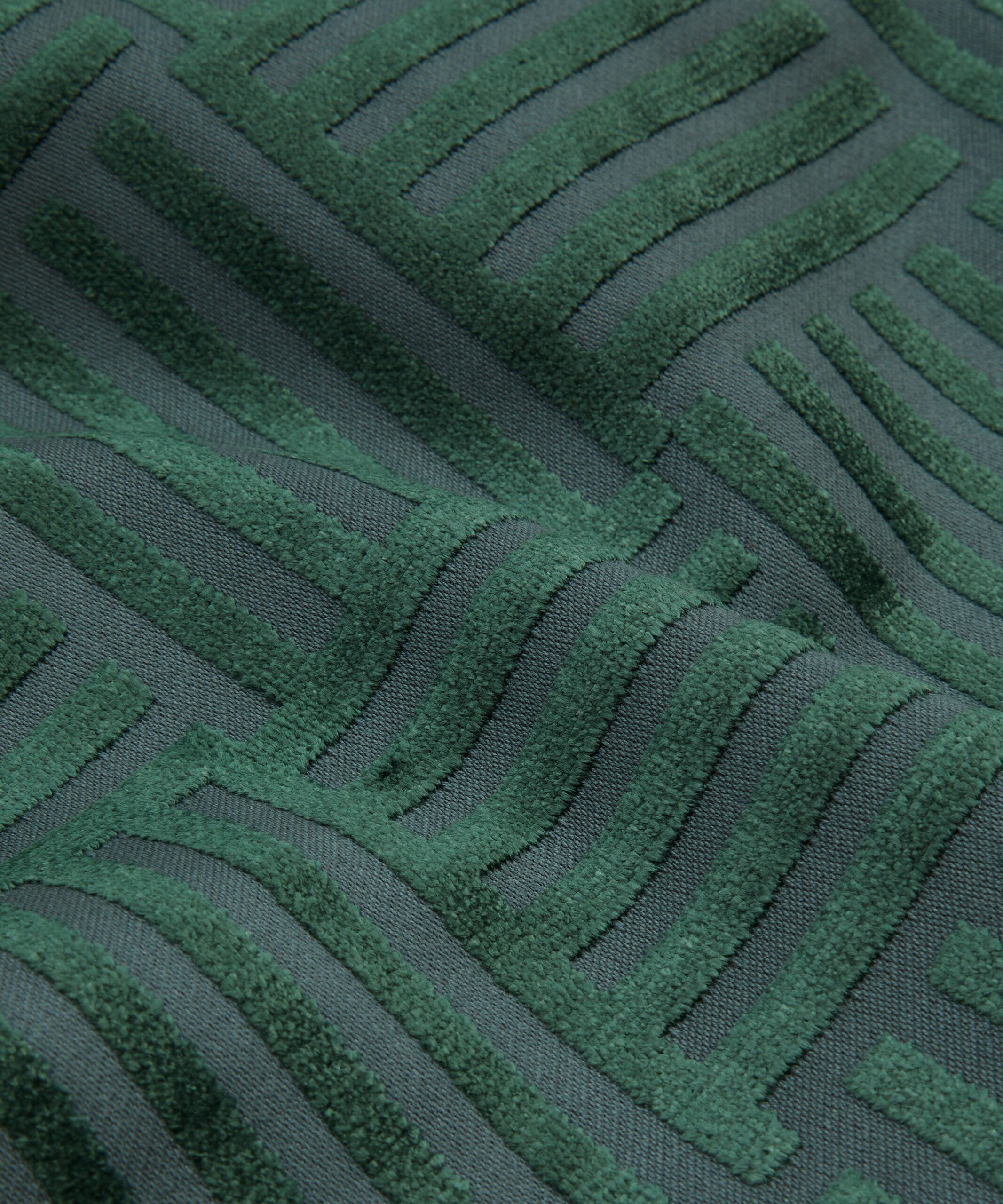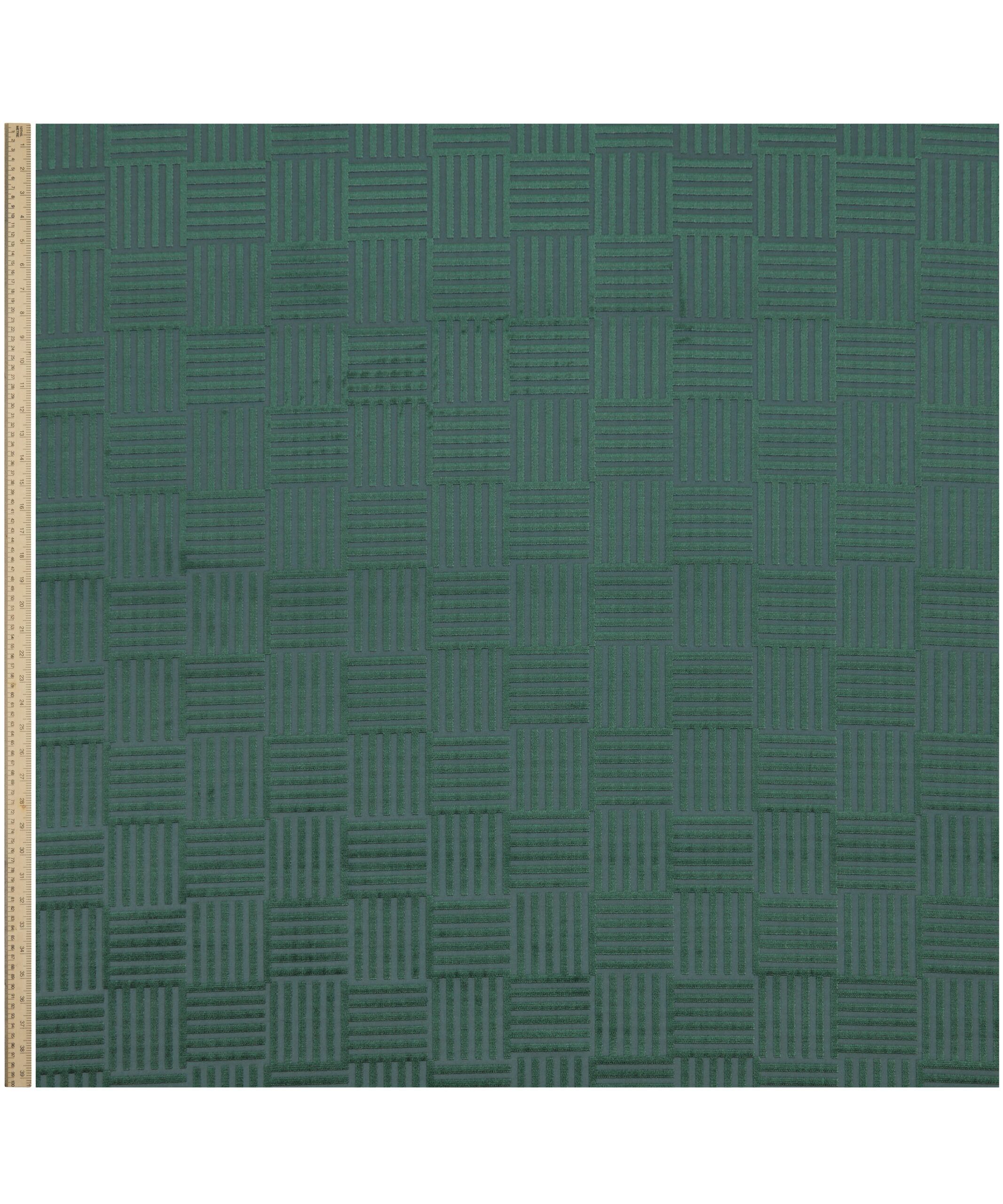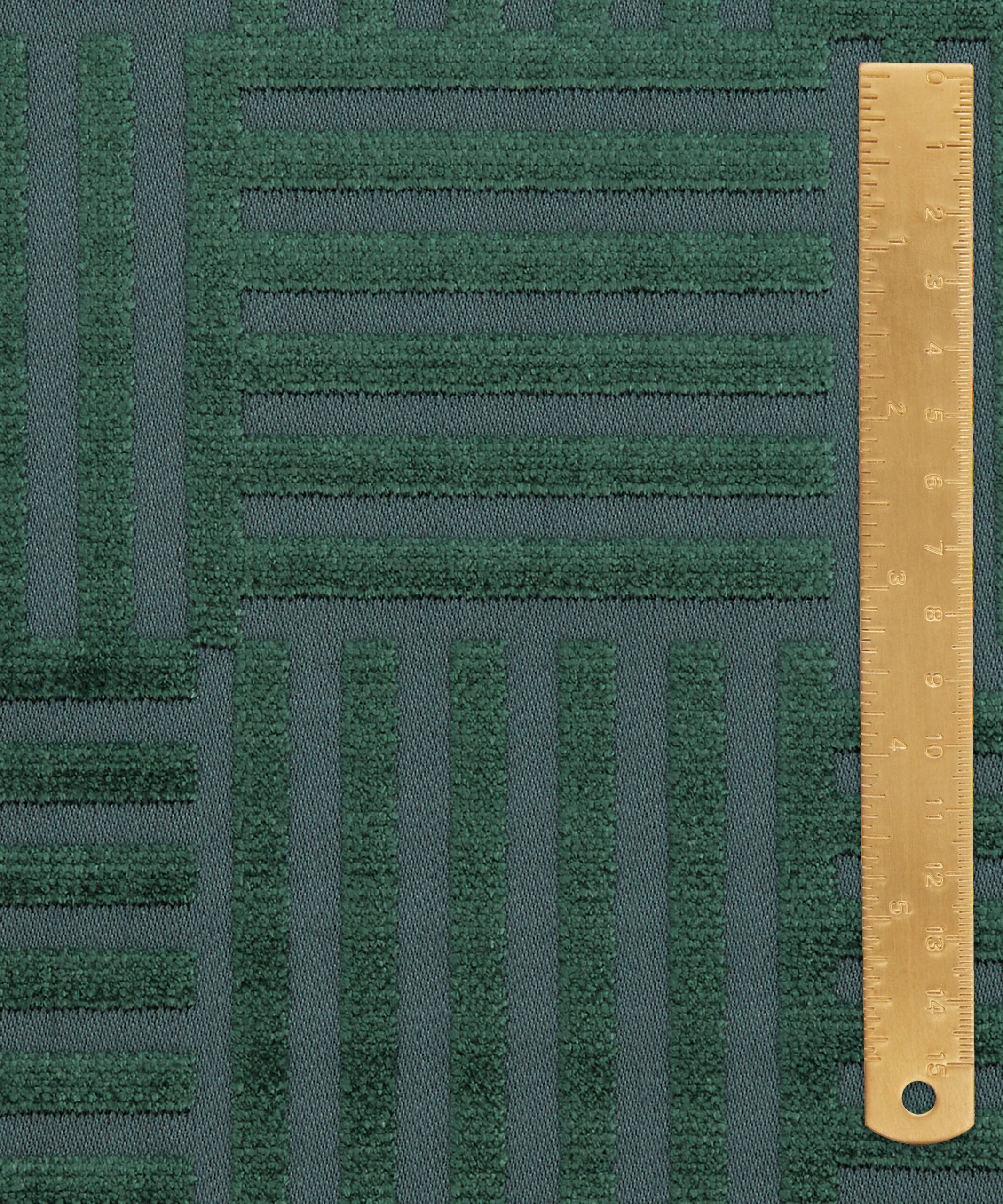A bold, dramatic geometric found in the Liberty archive has been developed into this richly textured matte and sheen velvet. Woven in Belgium using opulent yarns in ten jewel-inspired tones, this coordinate can be paired with all our prints and embroideries from the collection. Suitable for heavy domestic and severe contract upholstery, drapery, cushions, and accessories.