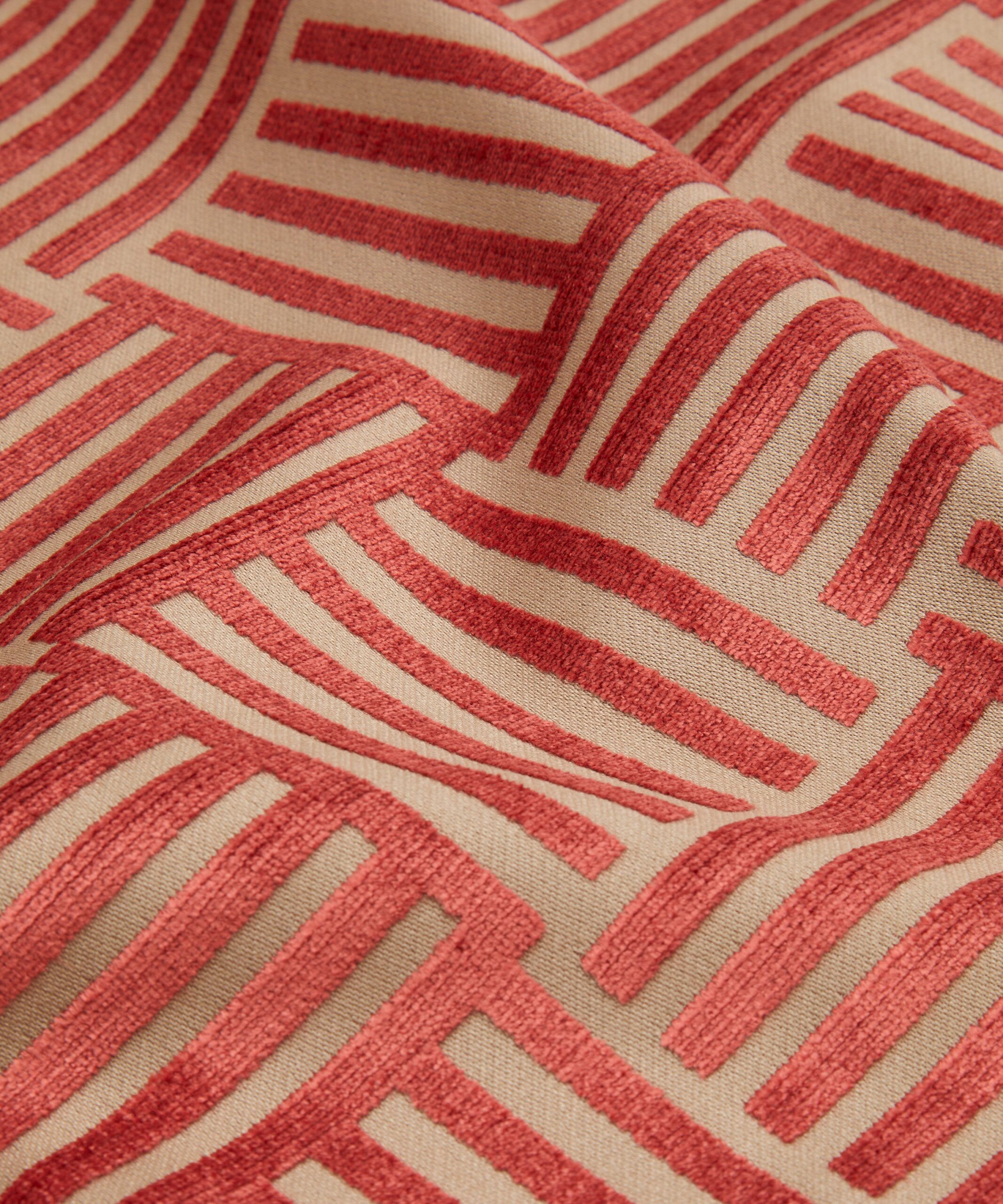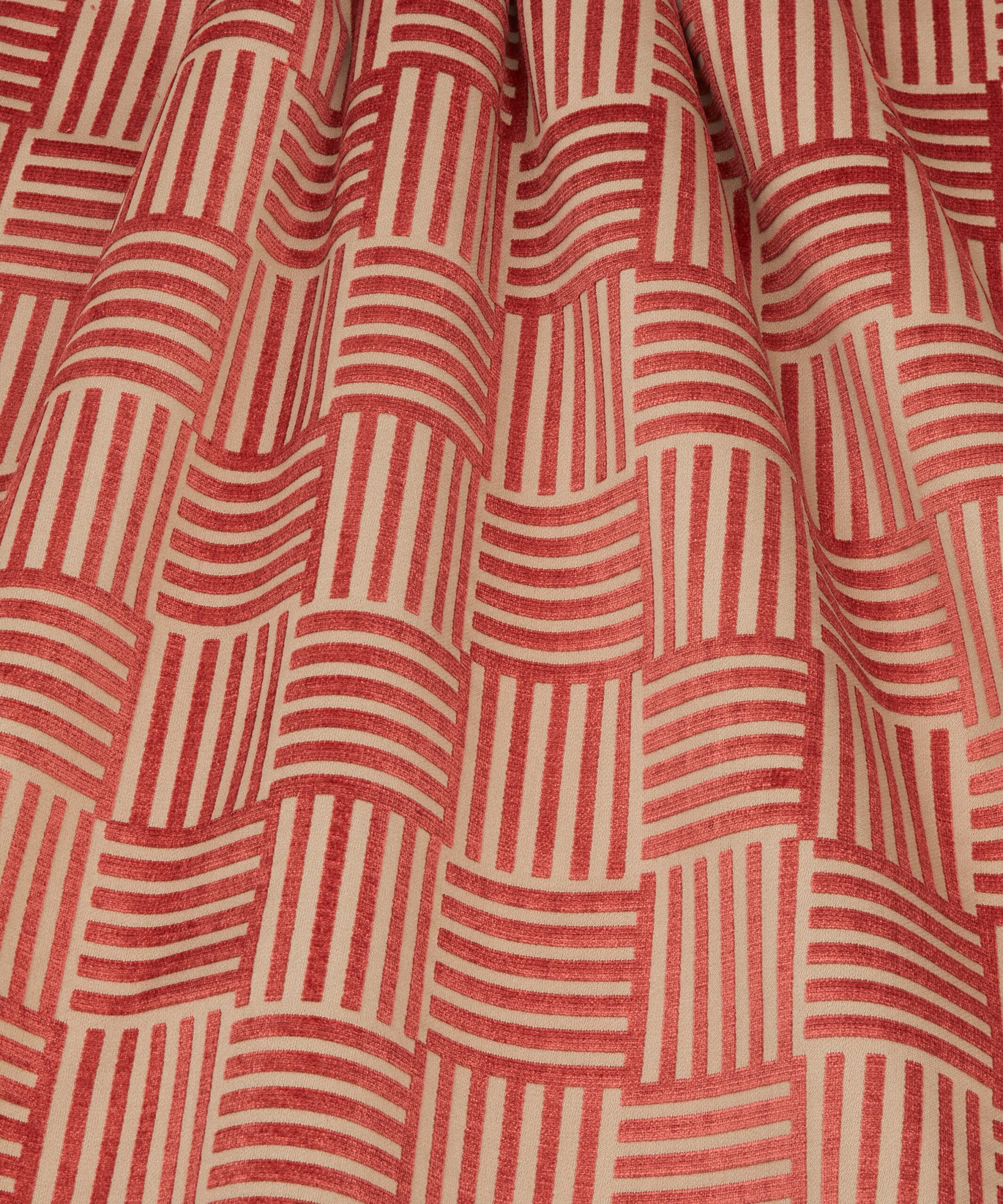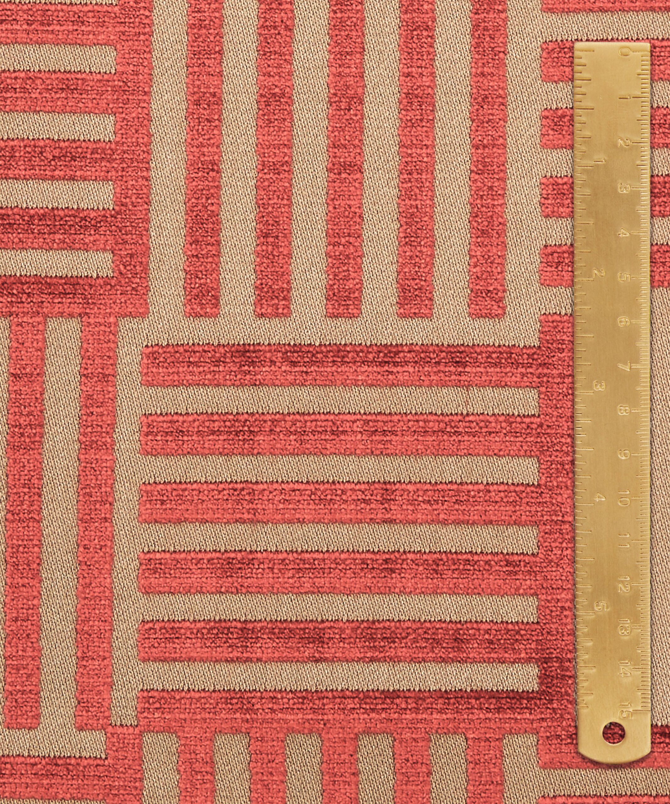 A bold, dramatic geometric found in the Liberty archive has been developed into this richly textured matte and sheen velvet. Woven in Belgium using opulent yarns in ten jewel-inspired tones, this coordinate can be paired with all our prints and embroideries from the collection. Suitable for heavy domestic and severe contract upholstery, drapery, cushions, and accessories.