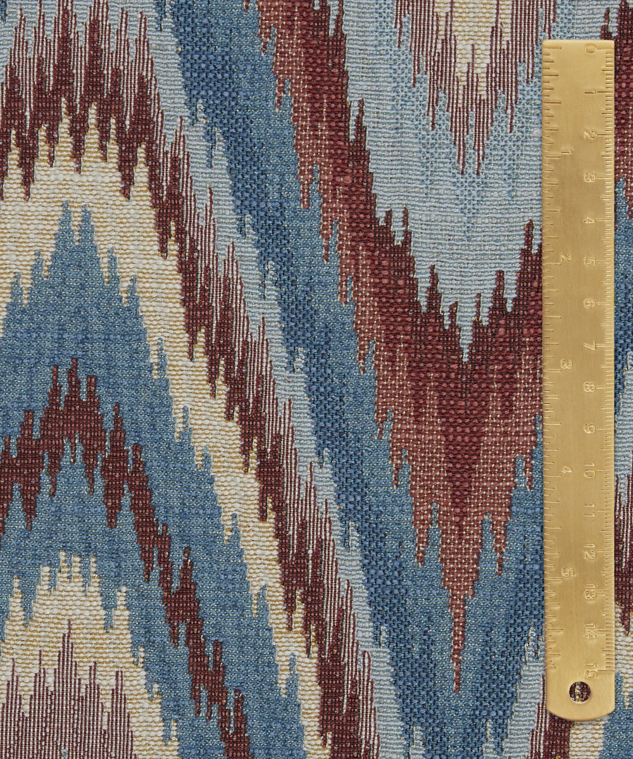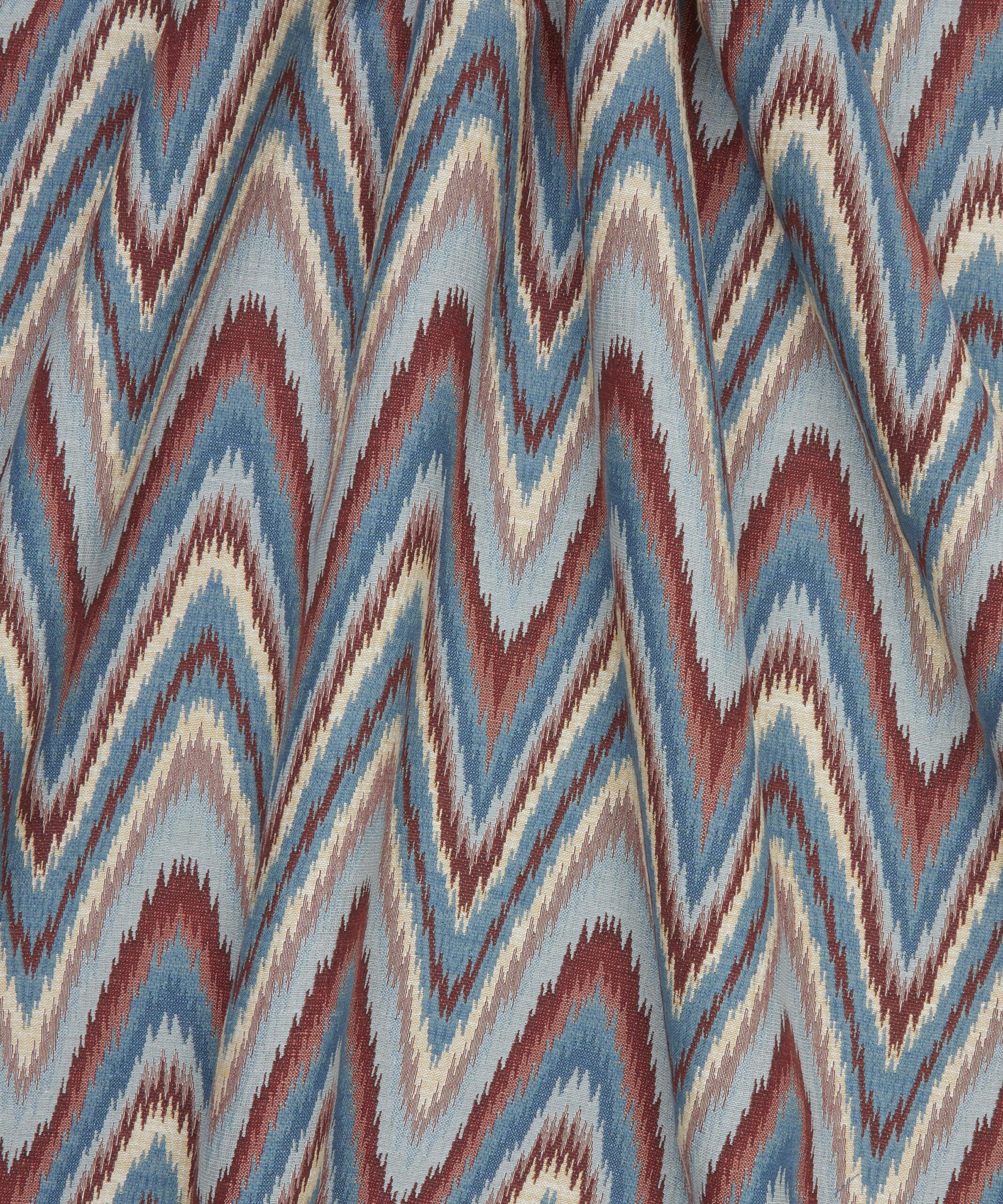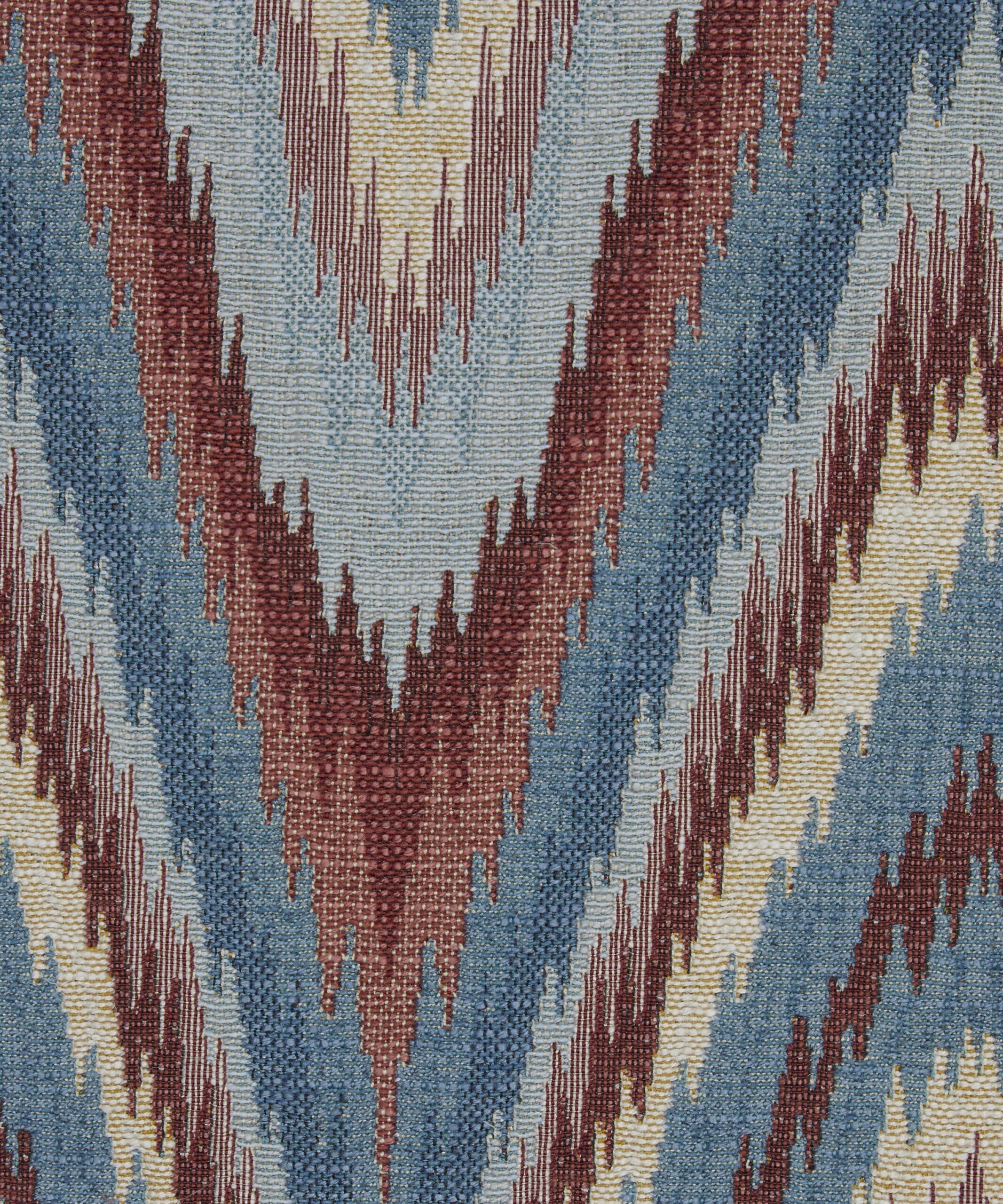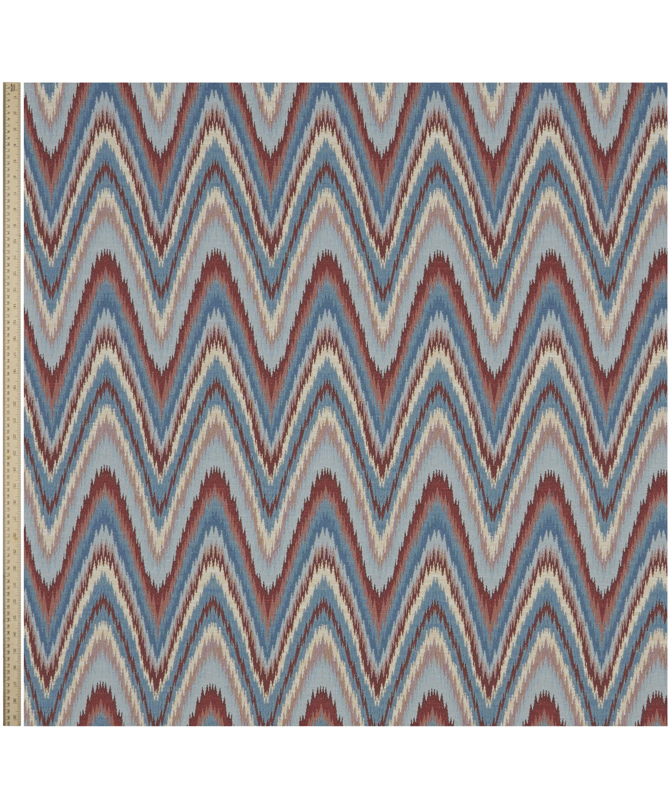 Bombazine is a contemporary interpretation of the historical flame stitch, a bold, often colourful zig zag pattern achieved through a combination of different weaving techniques. Popular during the 18th century amongst Europe and its colonies, this luxurious weave was developed for Liberty. Using textural yarns, coloured with rich hues from the design house’s signature colour palette, this beautiful coordinating fabric offers a vibrant graphic contrast to the collection’s intricate floral artworks. Ideal for upholstery, drapery, cushions, and accessories.