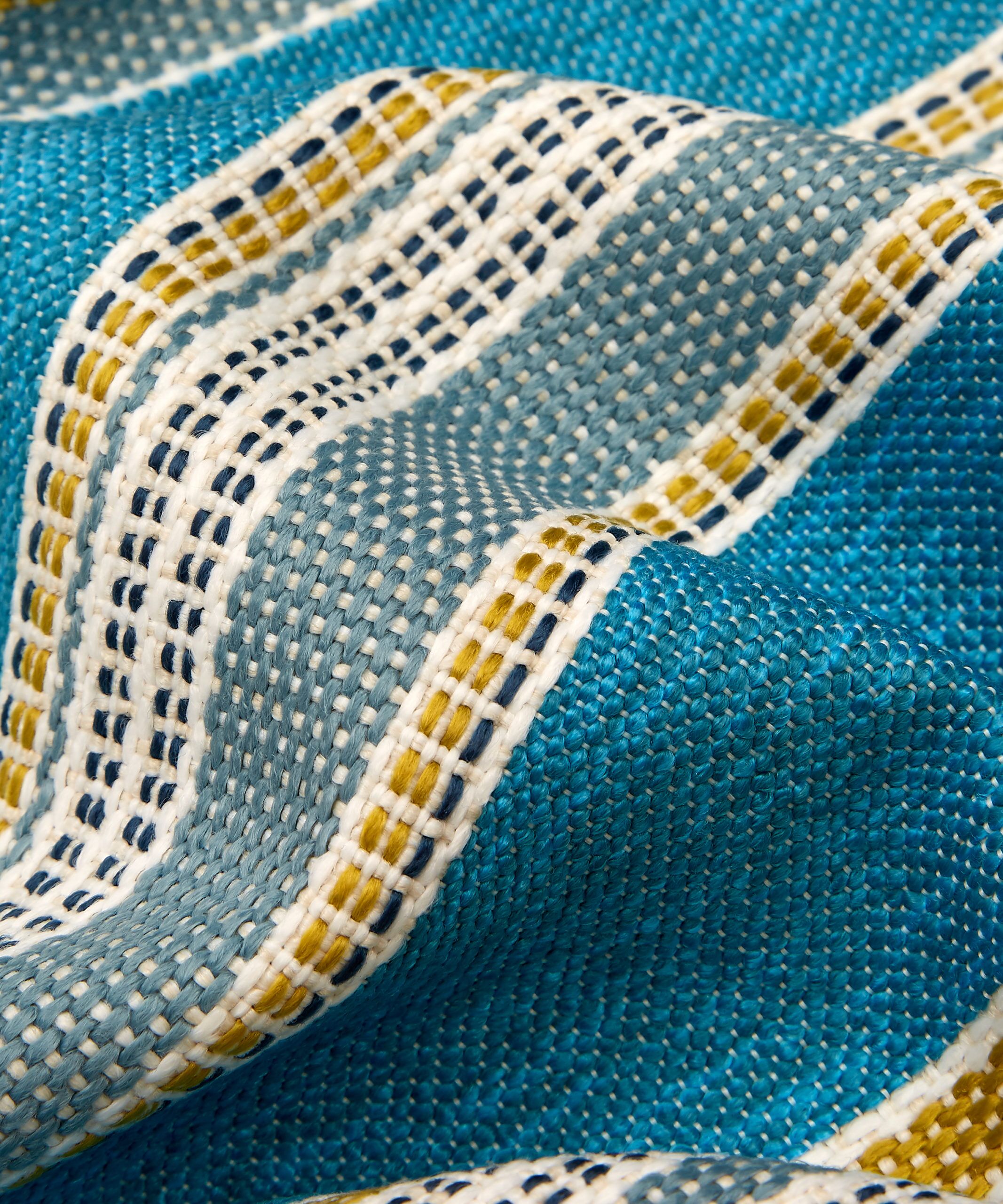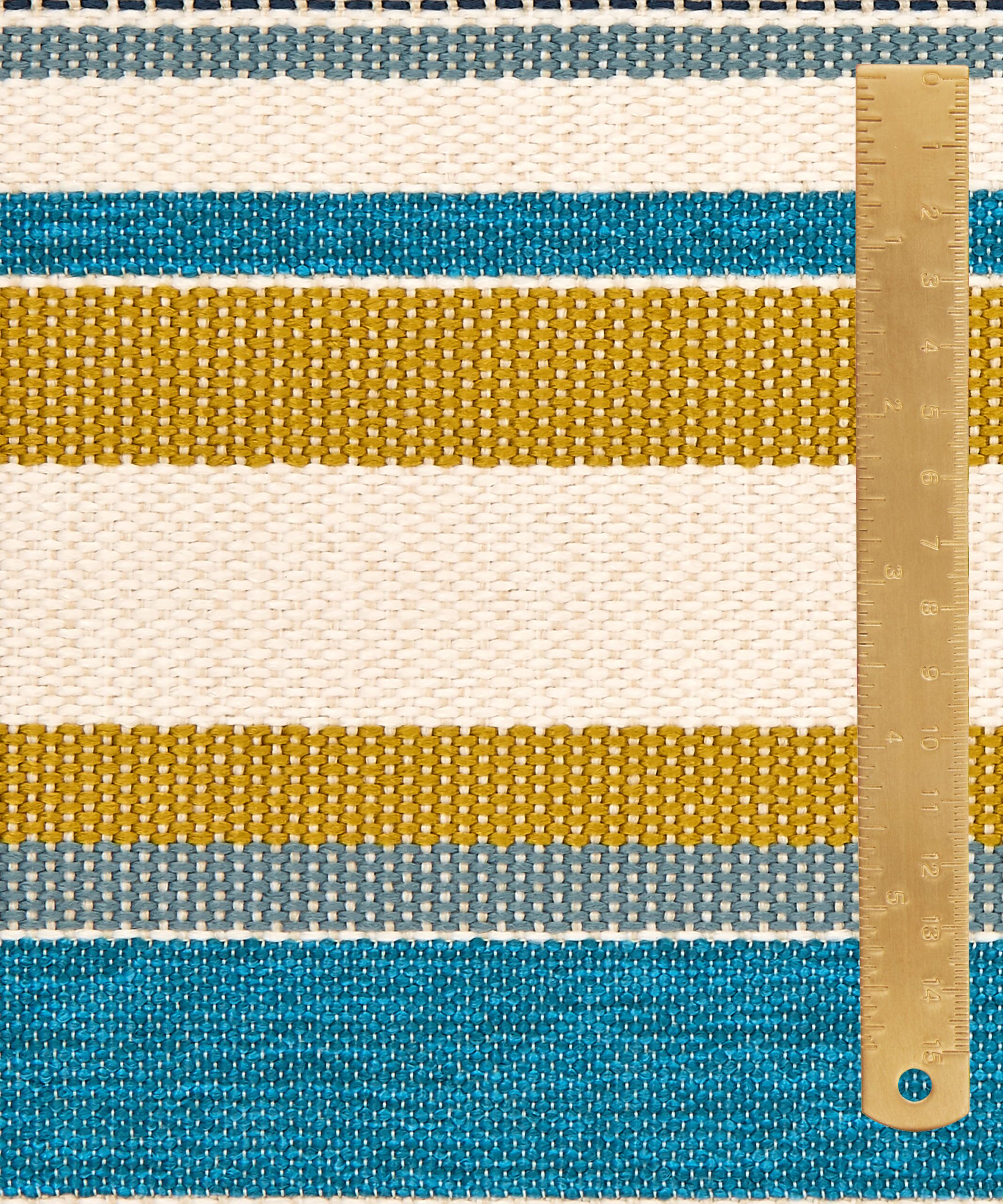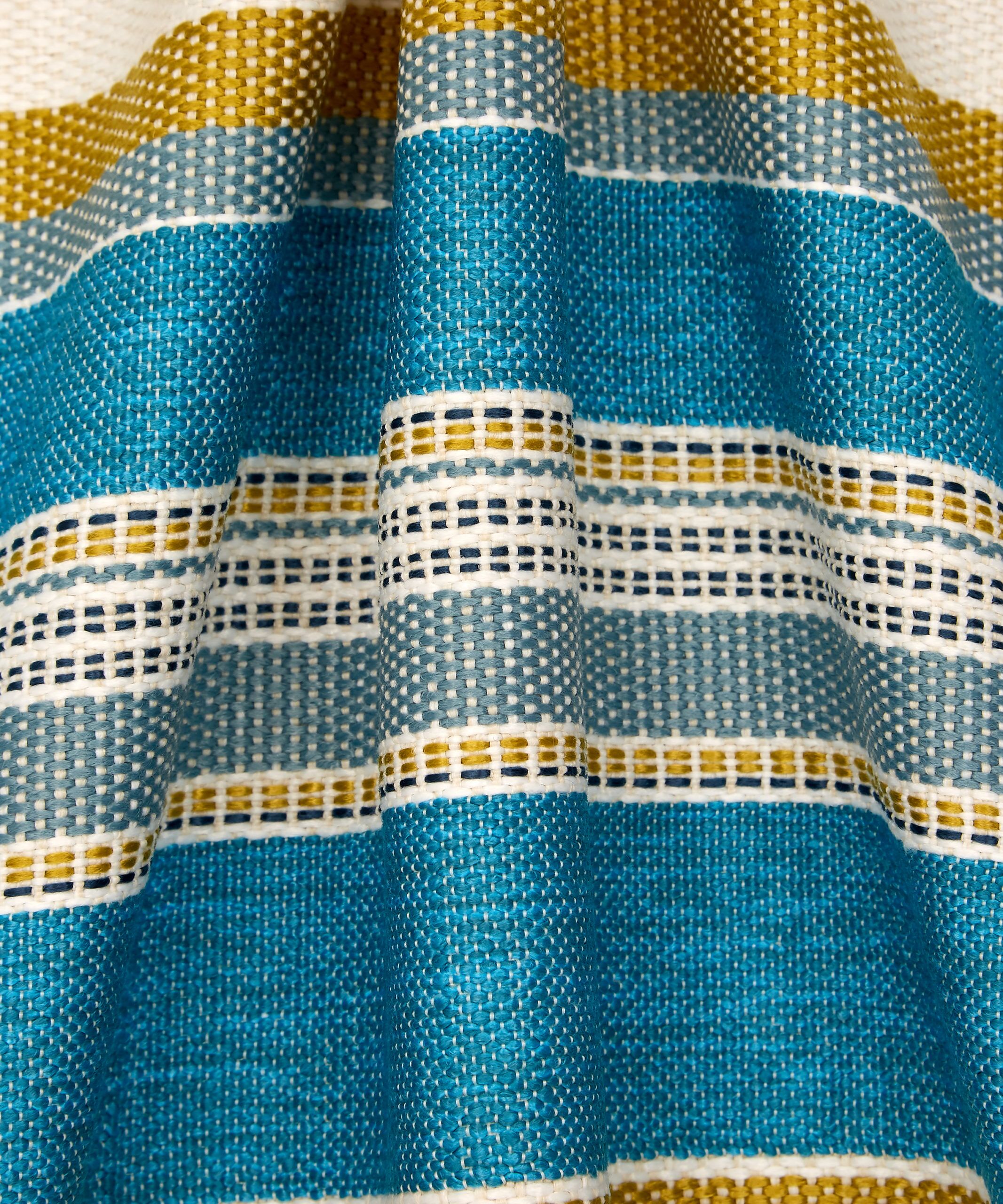 Originally created as a printed fabric design in 1976, Cabana Stripe is versatile and practical, with a highly tactile texture and complementary colours reminiscent of classic deckchair prints. Developed from the archive, this new design translates a bold mixed vertical stripe into textured weave effects – offering a strong contemporary colour contrast to the printed designs.