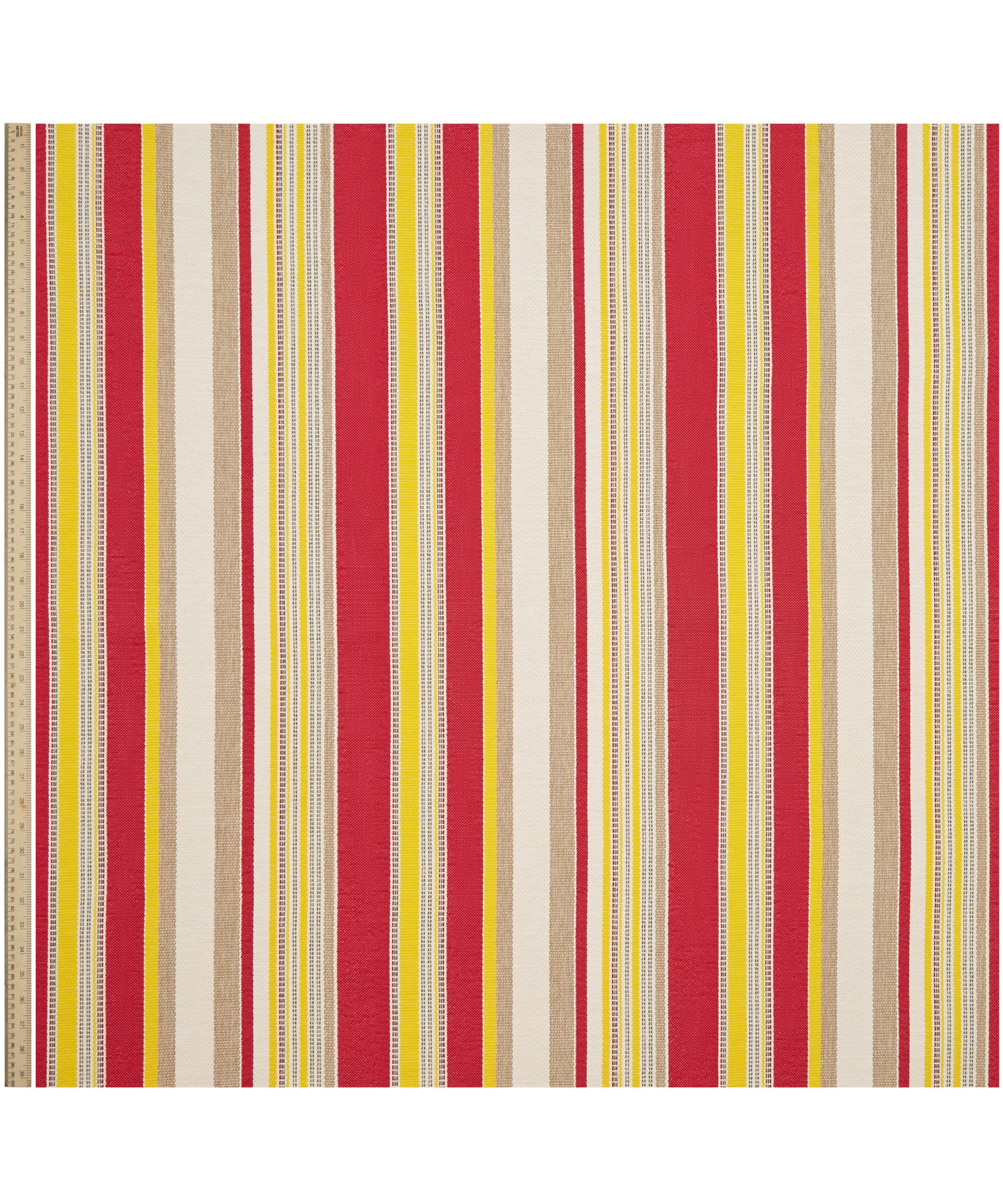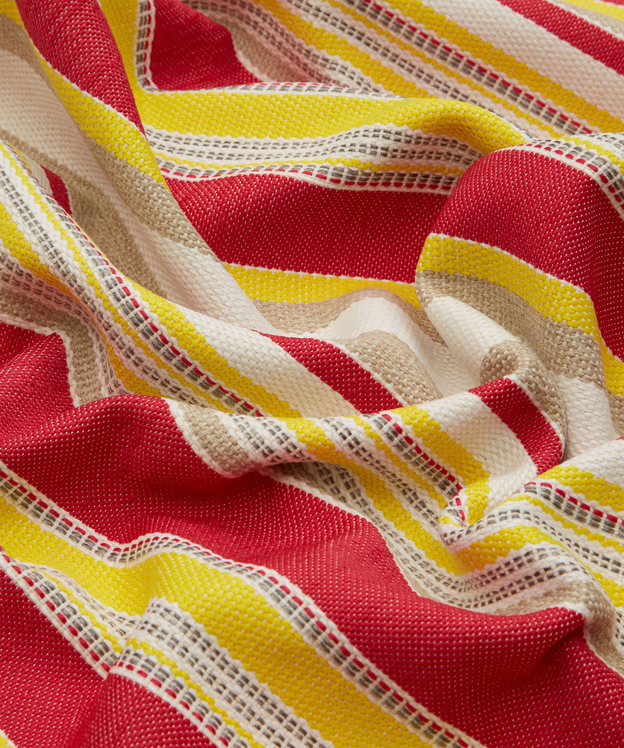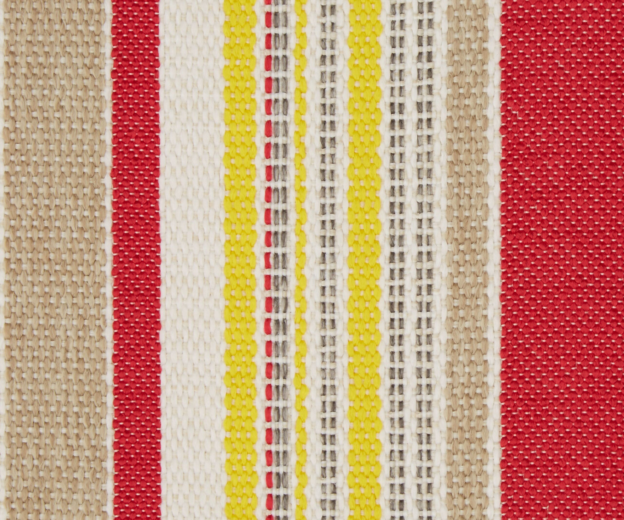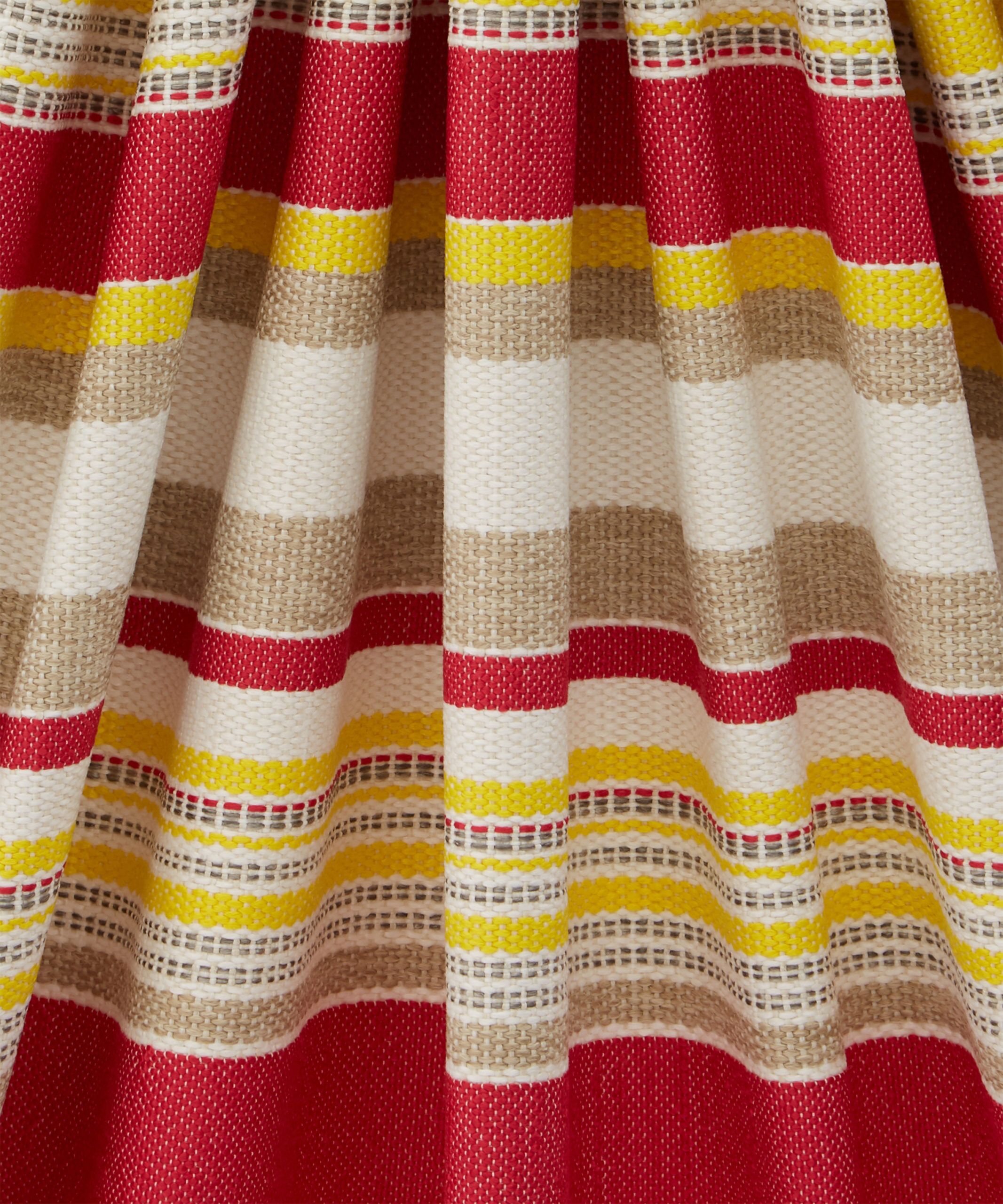 Originally created as a printed fabric design in 1976, Cabana Stripe is versatile and practical, with a highly tactile texture and complementary colours reminiscent of classic deckchair prints. Developed from the archive, this new design translates a bold mixed vertical stripe into textured weave effects – offering a strong contemporary colour contrast to the printed designs.