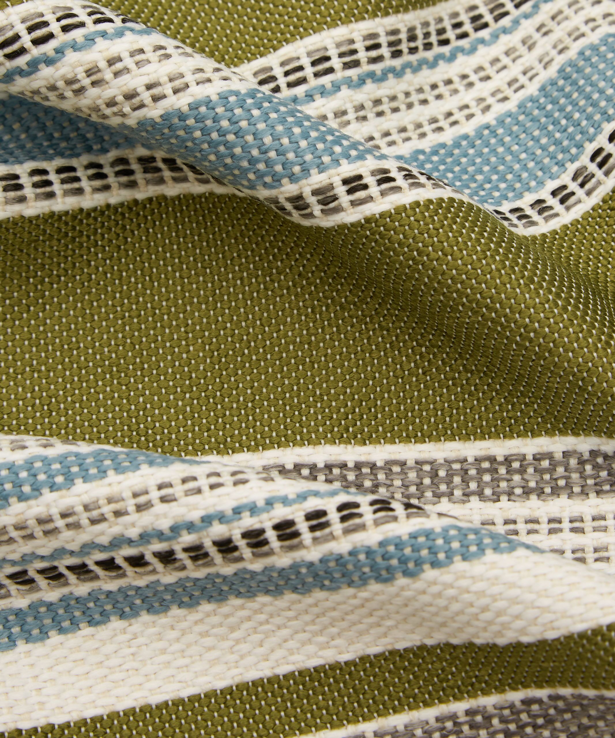 Originally created as a printed fabric design in 1976, Cabana Stripe is versatile and practical, with a highly tactile texture and complementary colours reminiscent of classic deckchair prints. Developed from the archive, this new design translates a bold mixed vertical stripe into textured weave effects – offering a strong contemporary colour contrast to the printed designs.