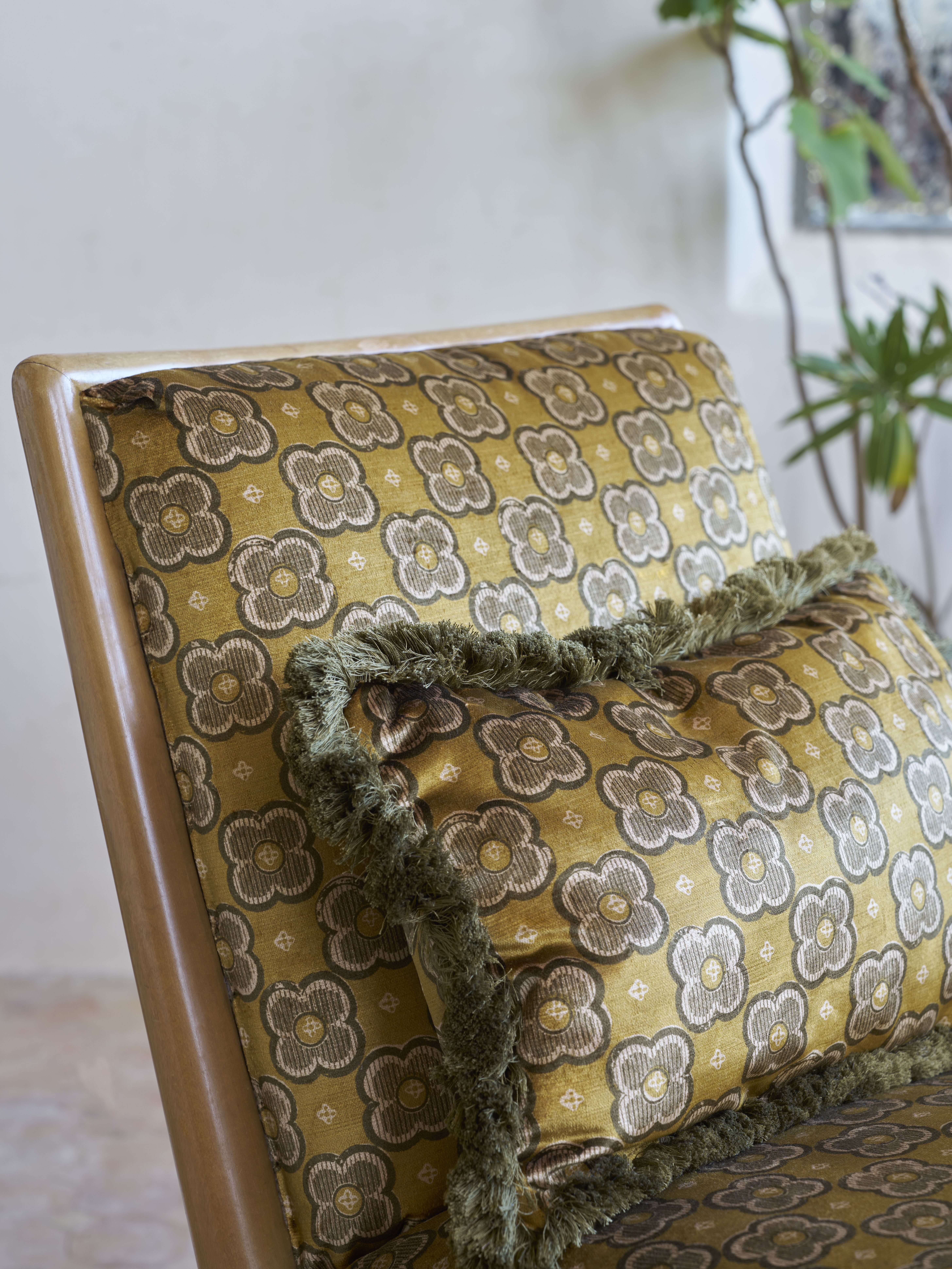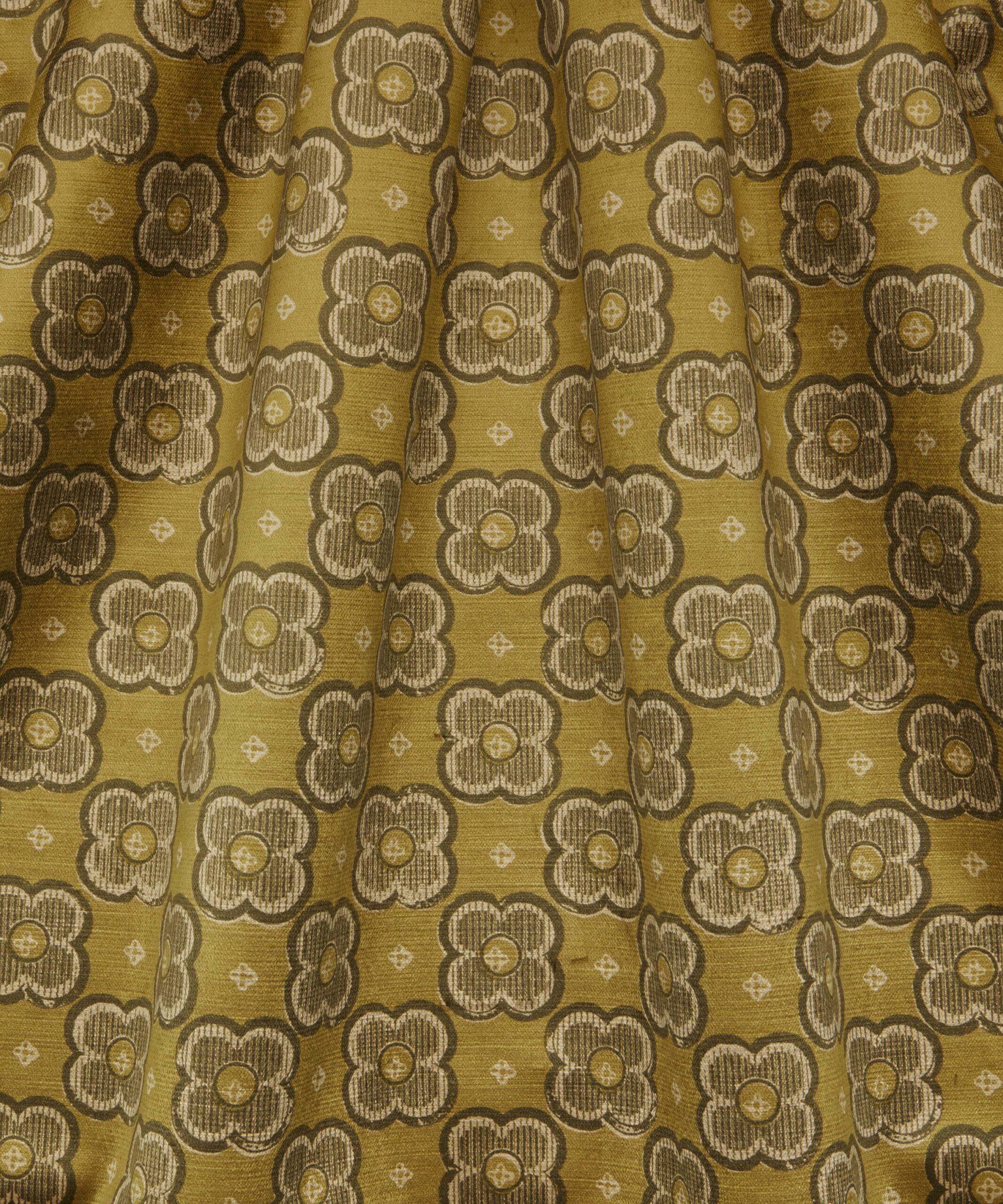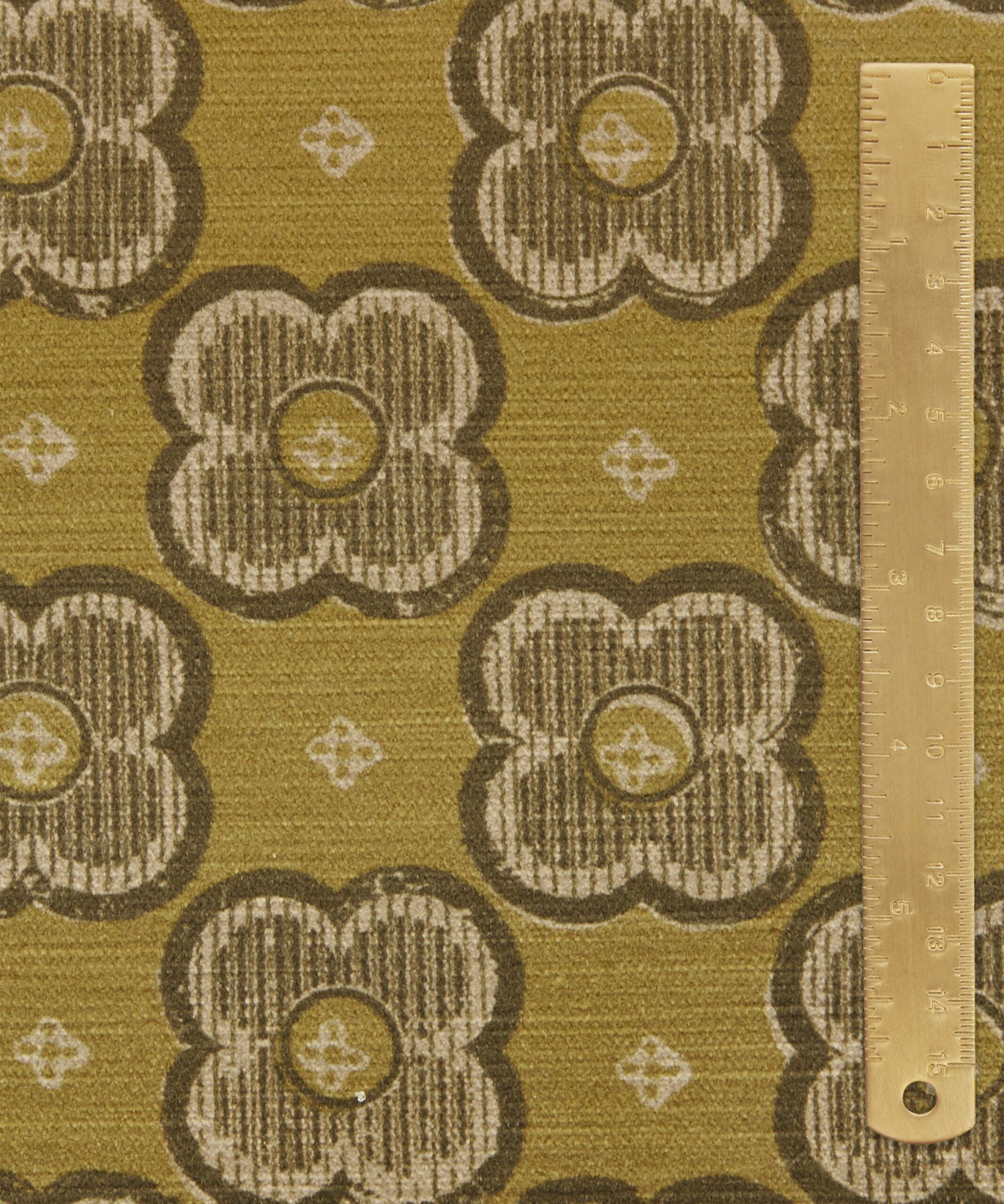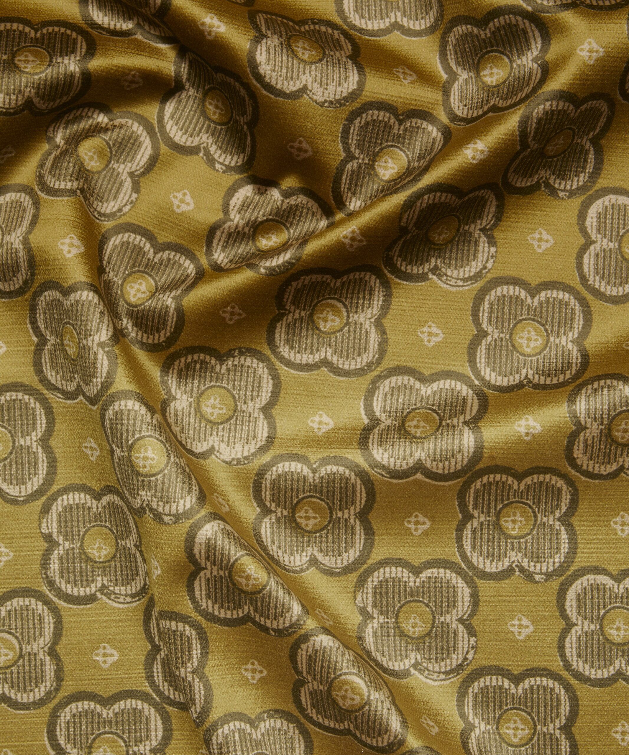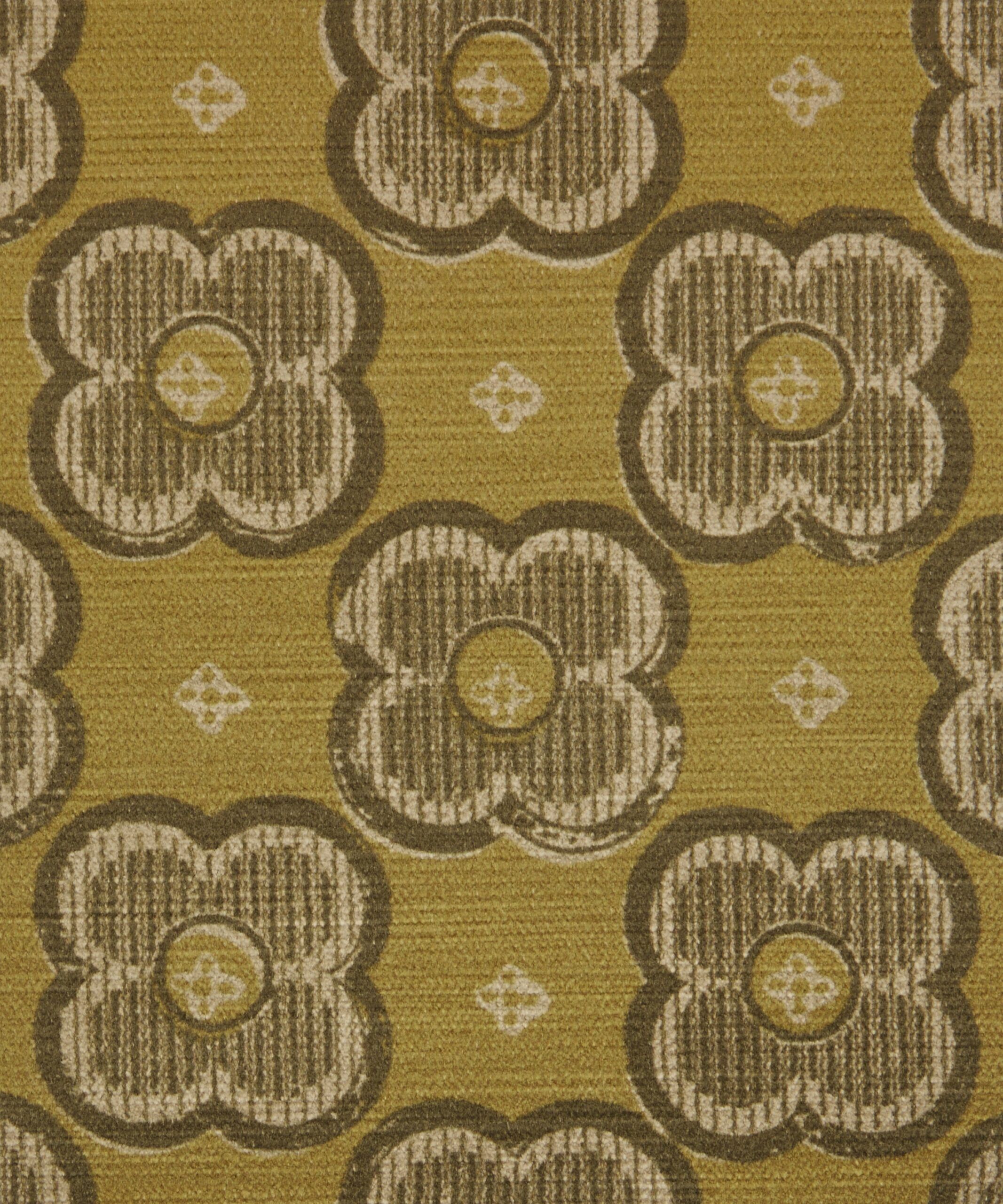 Based on a Liberty paper impression from the 1910s, this bold and minimal design reduces organic forms to geometric abstractions. A single four-leaf clover motif is observed through the prism of stylisation – purified and distilled to discover its structural essence. Suggestive of a botanical blueprint, mottled textures and subtle tonalities highlight the hand-crafted, block print effect. Printed on a richly textured, soft velvet based used to enhance the beautifully vibrant hues of the design’s colourways. With super abrasion and exquisite drape, this fabric is suitable for upholstery, drapery, cushions, and accessories.