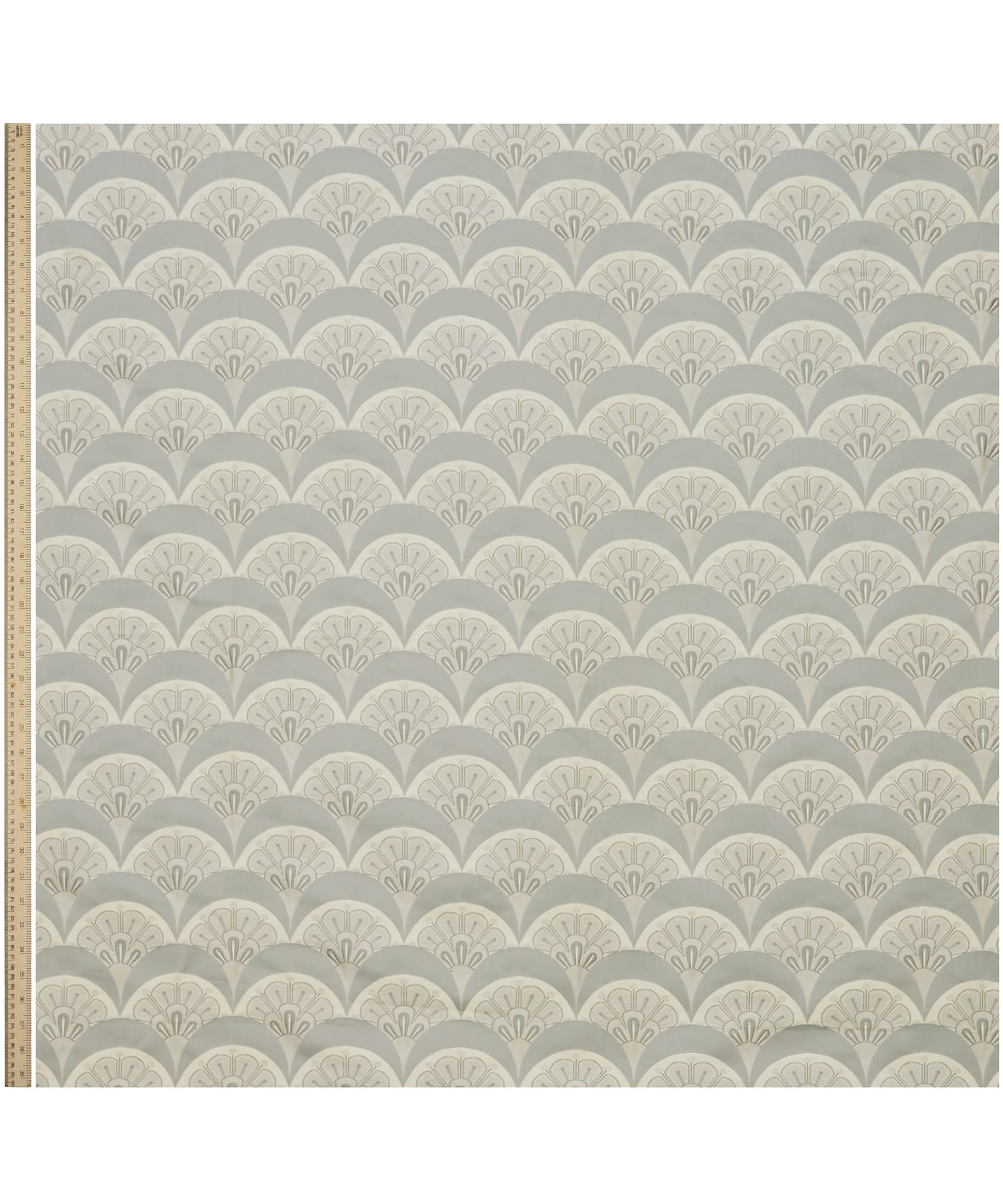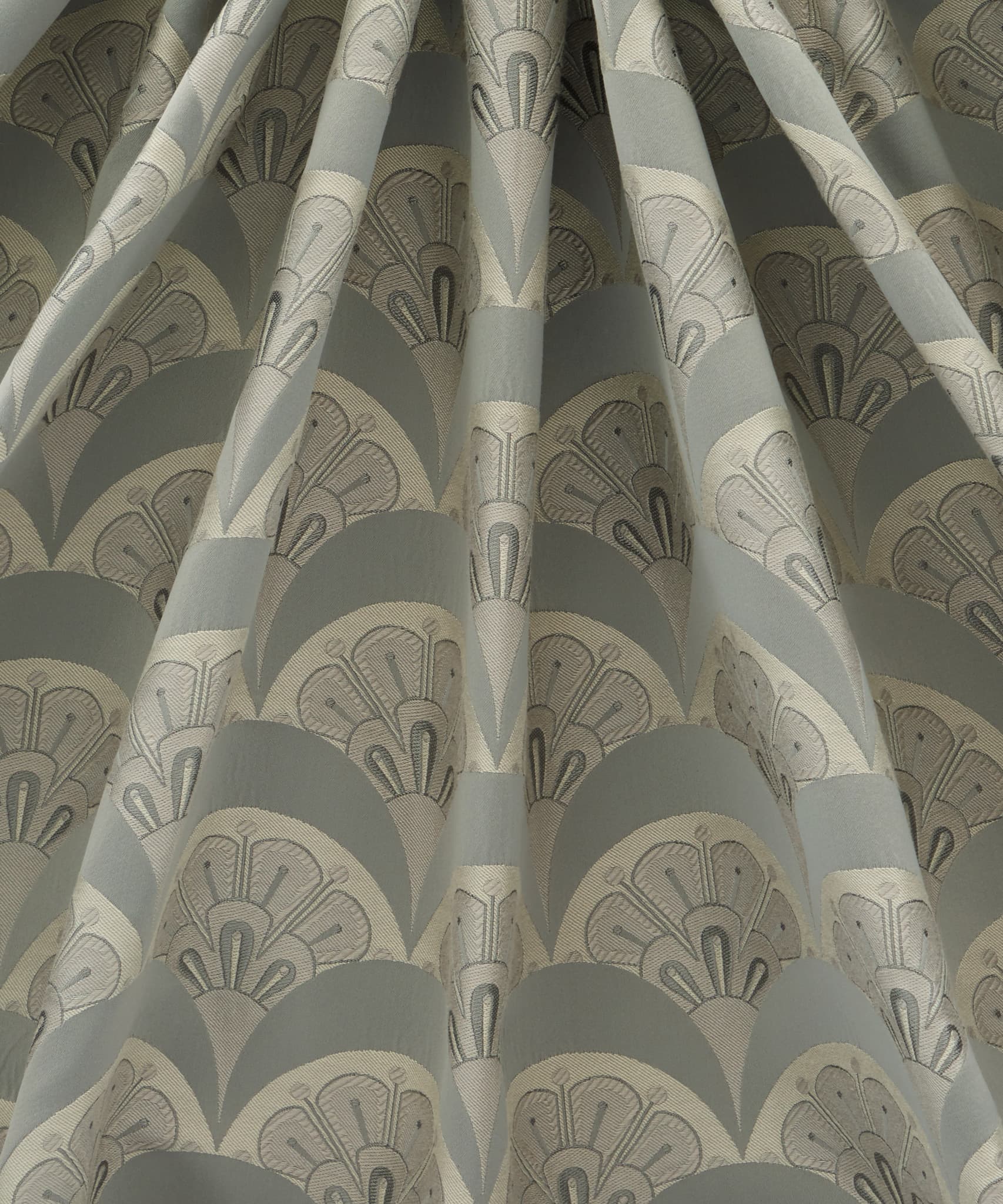 Deco Scallop is inspired by Liberty’s archive catalogues of the late 1890s to 1910s, when beautiful Japanese Art Deco fans and wallpapers were imported alongside fabrics, jewellery, porcelain, screens, and rugs. The motif was developed by the Liberty design studio as a simple contemporary woven jacquard design – a modern take on the Liberty peacock feather and Art Deco fan.