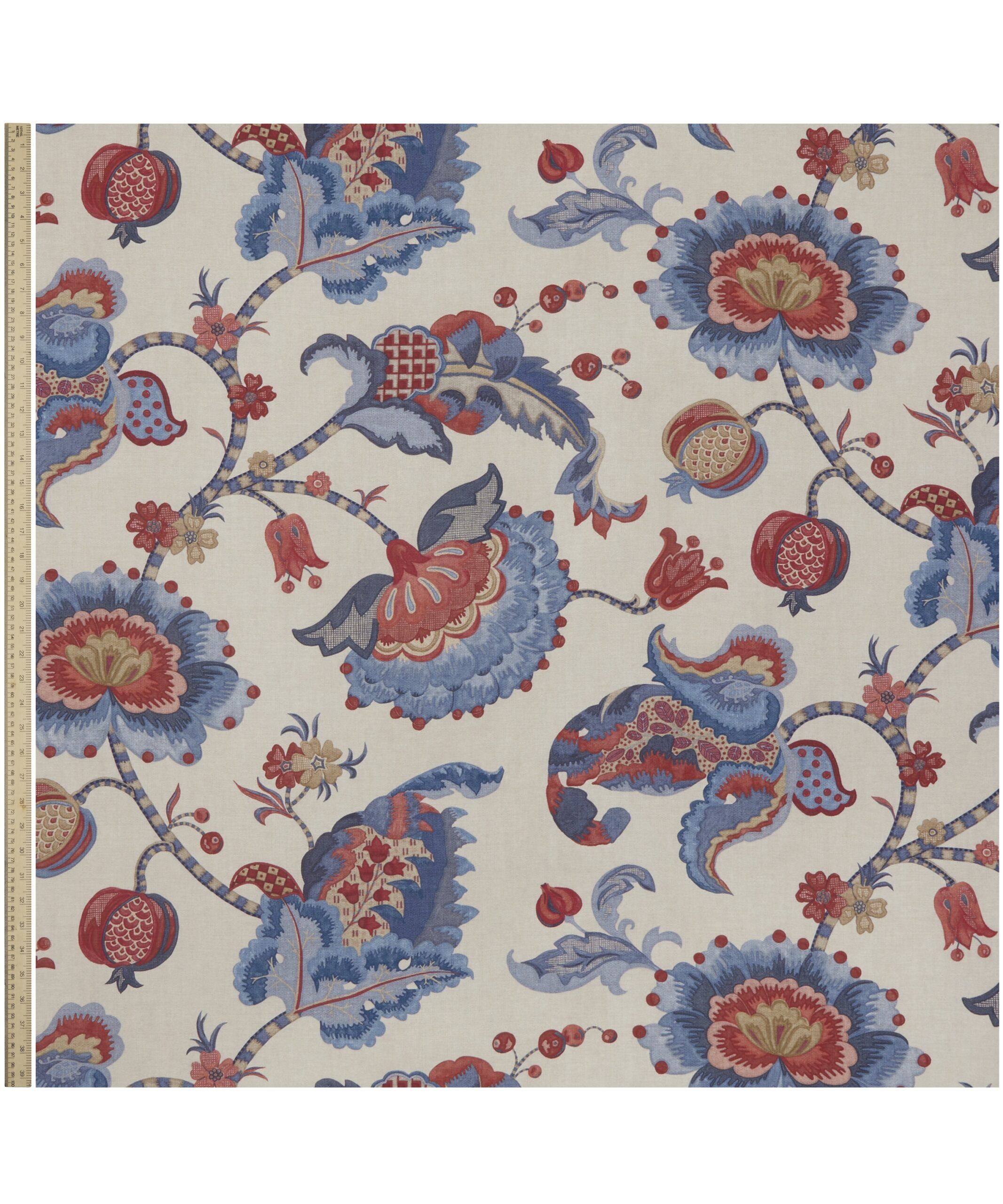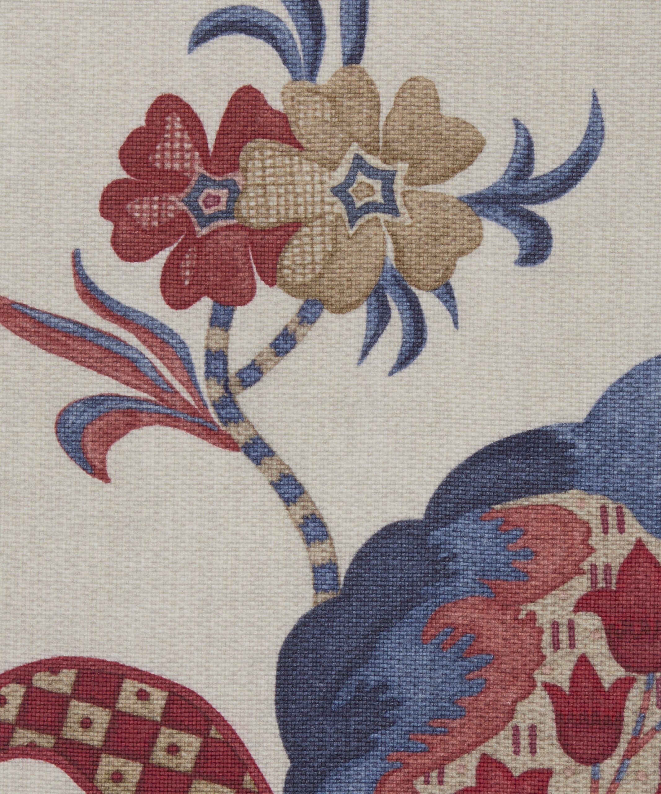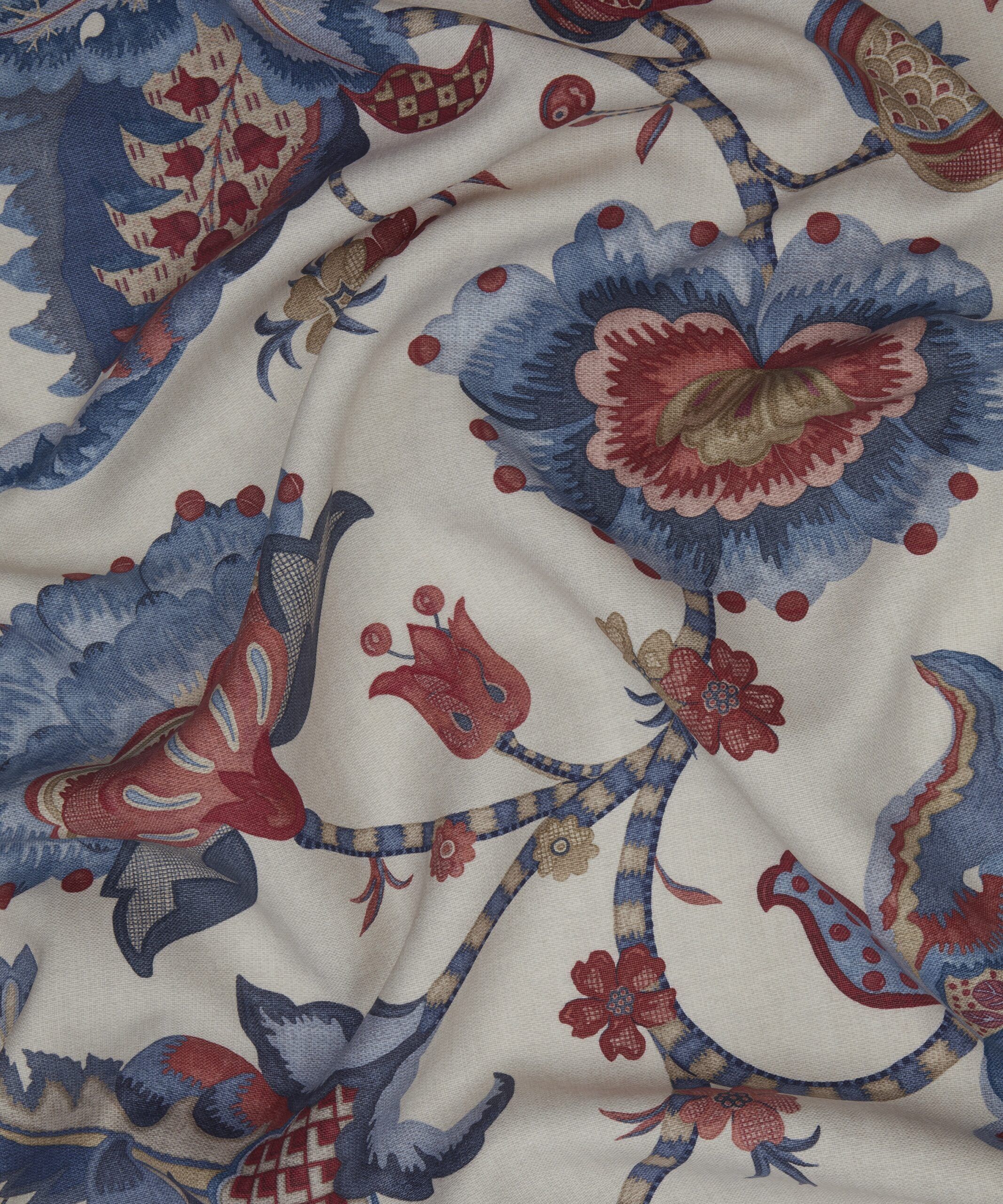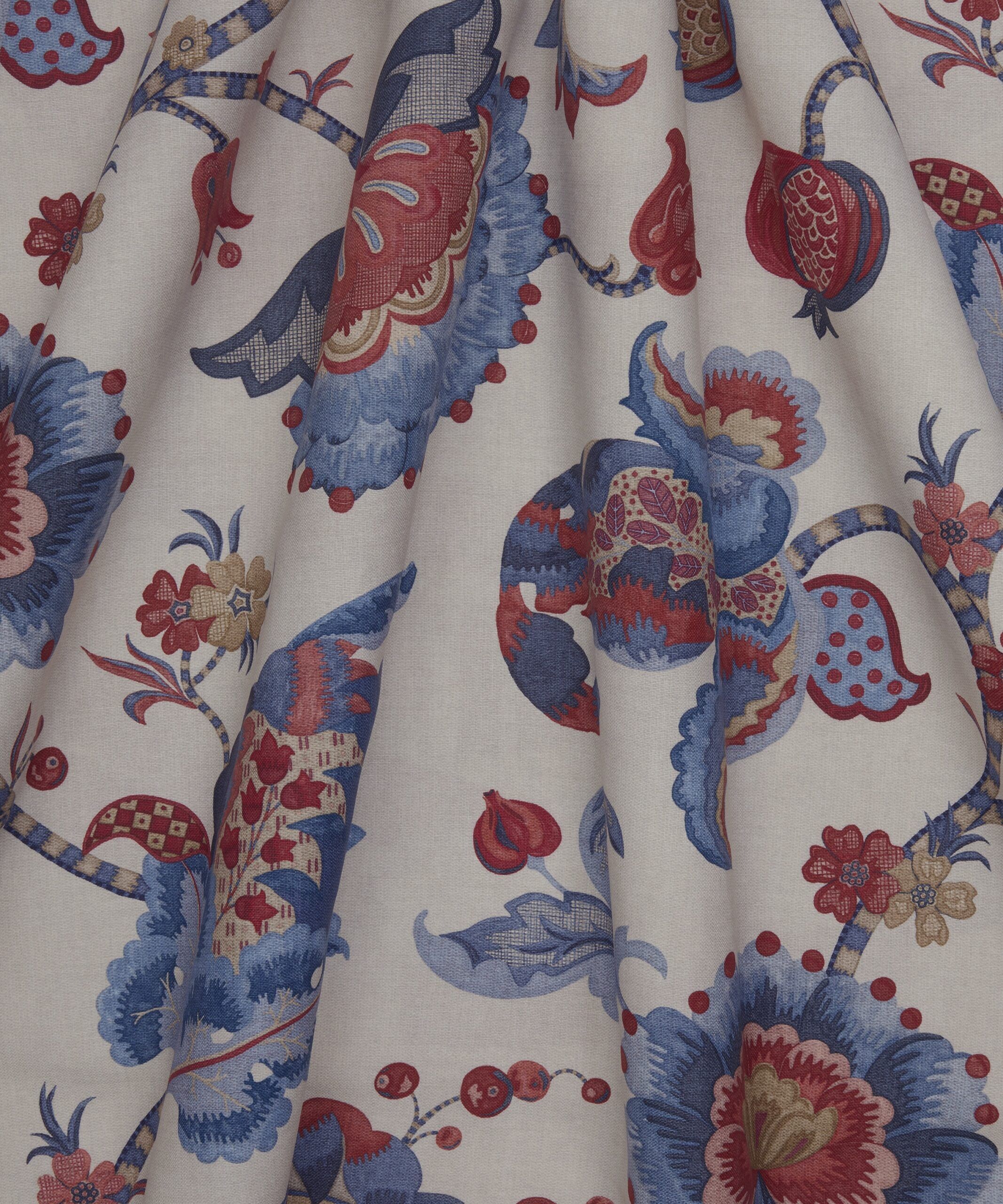 Drawing inspiration from a collection of Jacobean-style, hand-painted artworks discovered in the Liberty archive, this striking ornamental embroidery showcases the grandeur of early 17th century textiles. Oversized flowers enveloped by lush foliage are depicted in refreshing hues and arranged in a trailing Tree of Life-style pattern, highlighting the richness of flow and form. Eden Orchard is ideal for general domestic upholstery, drapery, and cushions.