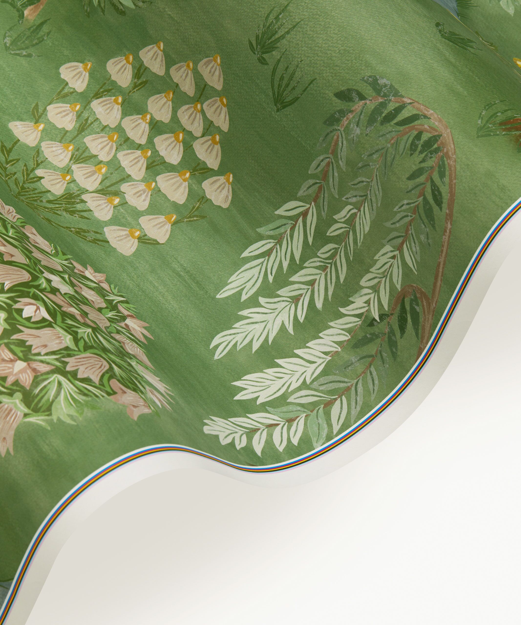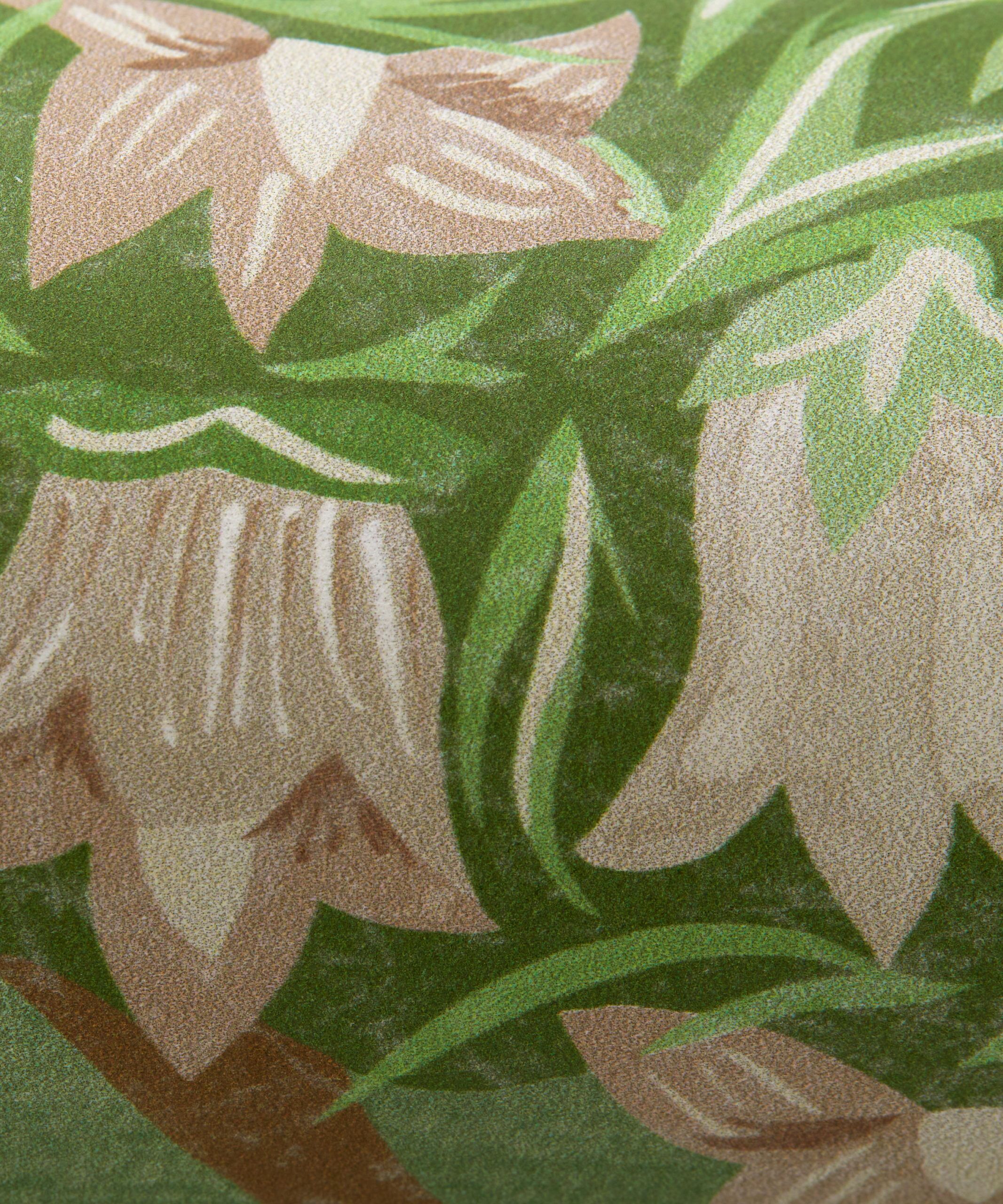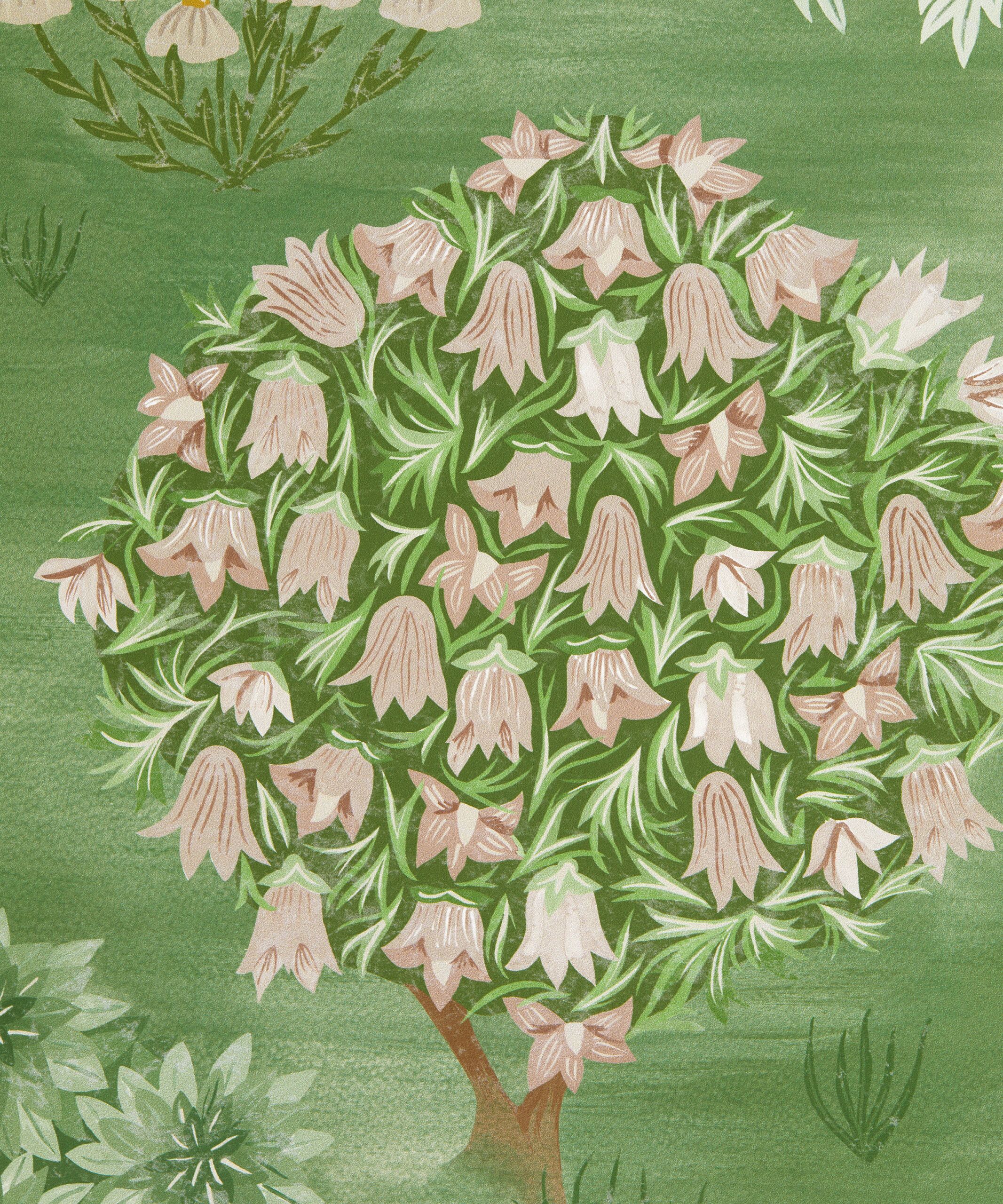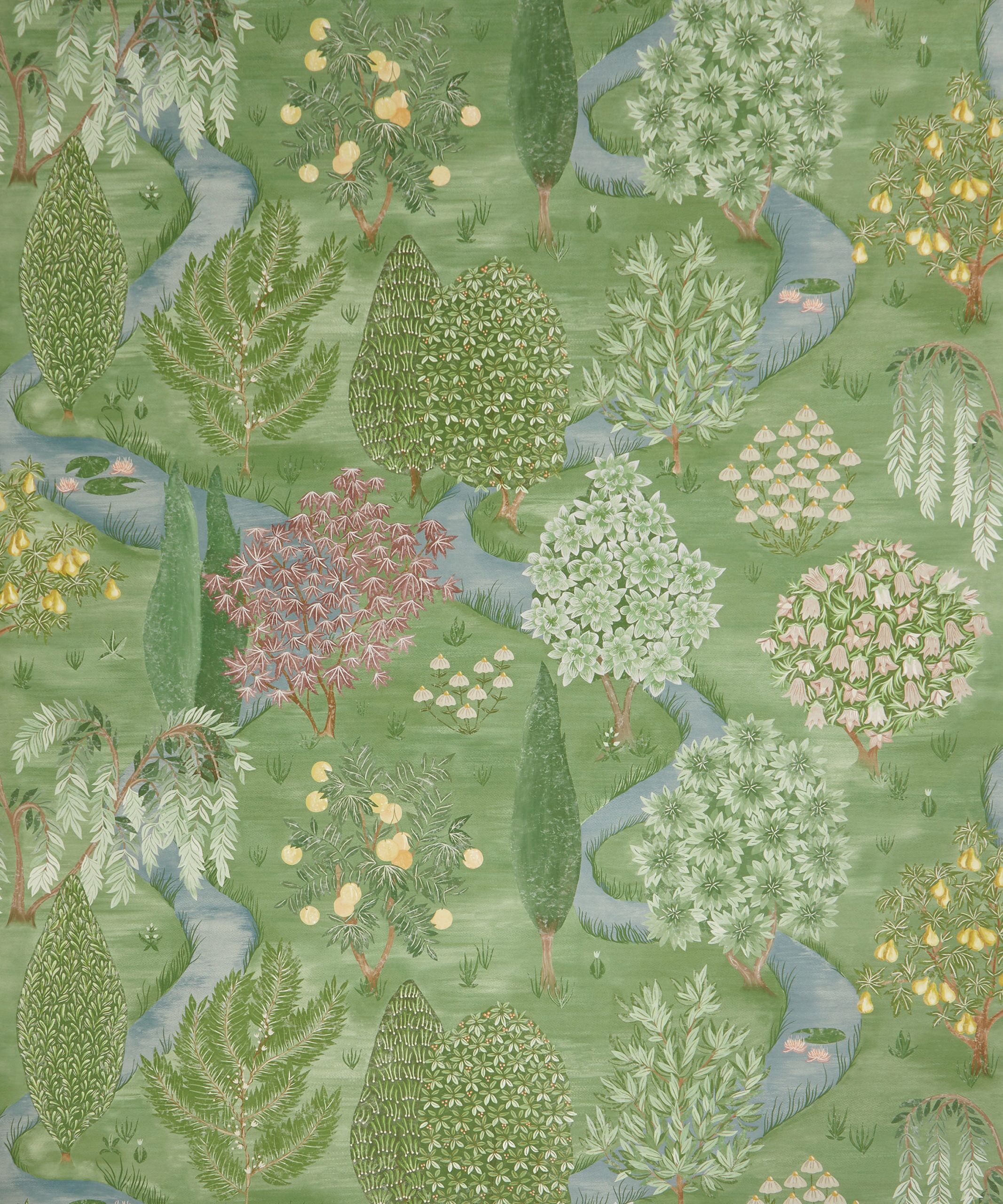 A panoramic voyage across an imagined landscape, this captivating design was inspired by the book ‘Around the World in 80 Trees’ by Jonathan Drori. Hand-painted in the Liberty Design Studio in a painting style inspired by miniature Indian garden paintings, Enchanted Wood has stylised trees from all over the world including Maple, Cypress, Willow, Orange, and Pear. Weaving through these lush woodlands are meandering streams, delicate grass and even an imagined Liberty floral tree.