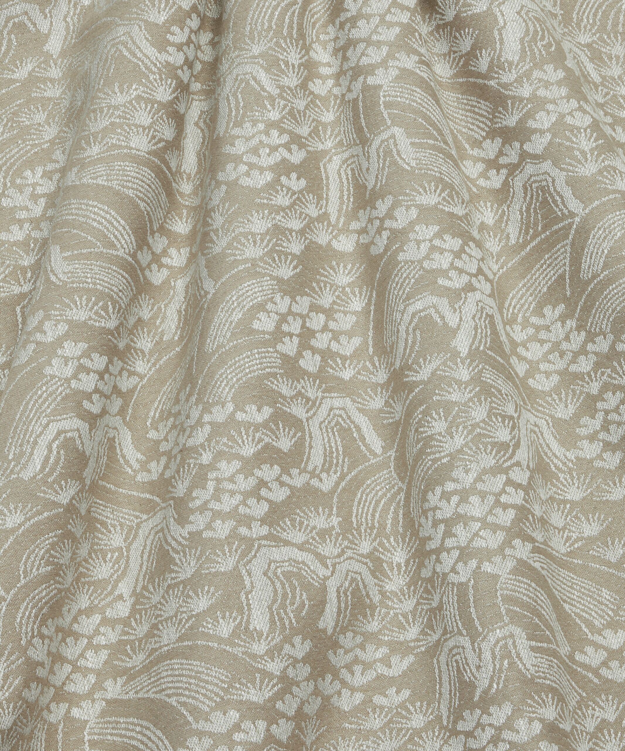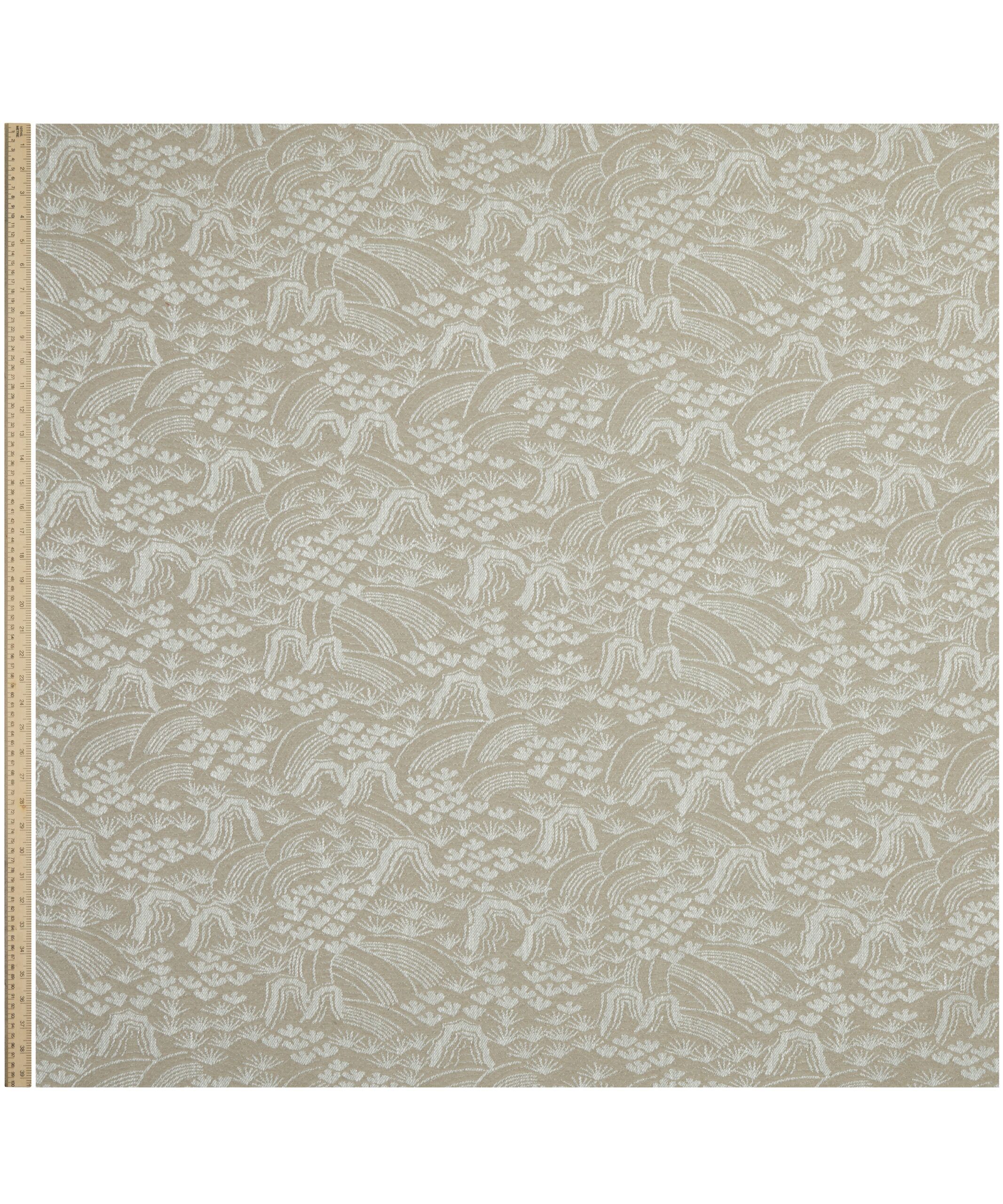 Based on a fabric swatch found in the Liberty archive, this monochromatic landscape vista is reminiscent of traditional Japanese woodblock prints and embraces the aesthetic and characteristics of a Zen Garden. The Design Studio translated the artwork into a cotton and linen weave with a subtle sheen and rich texture, available in four colourways. Suitable for upholstery, drapery, cushions, and accessories.