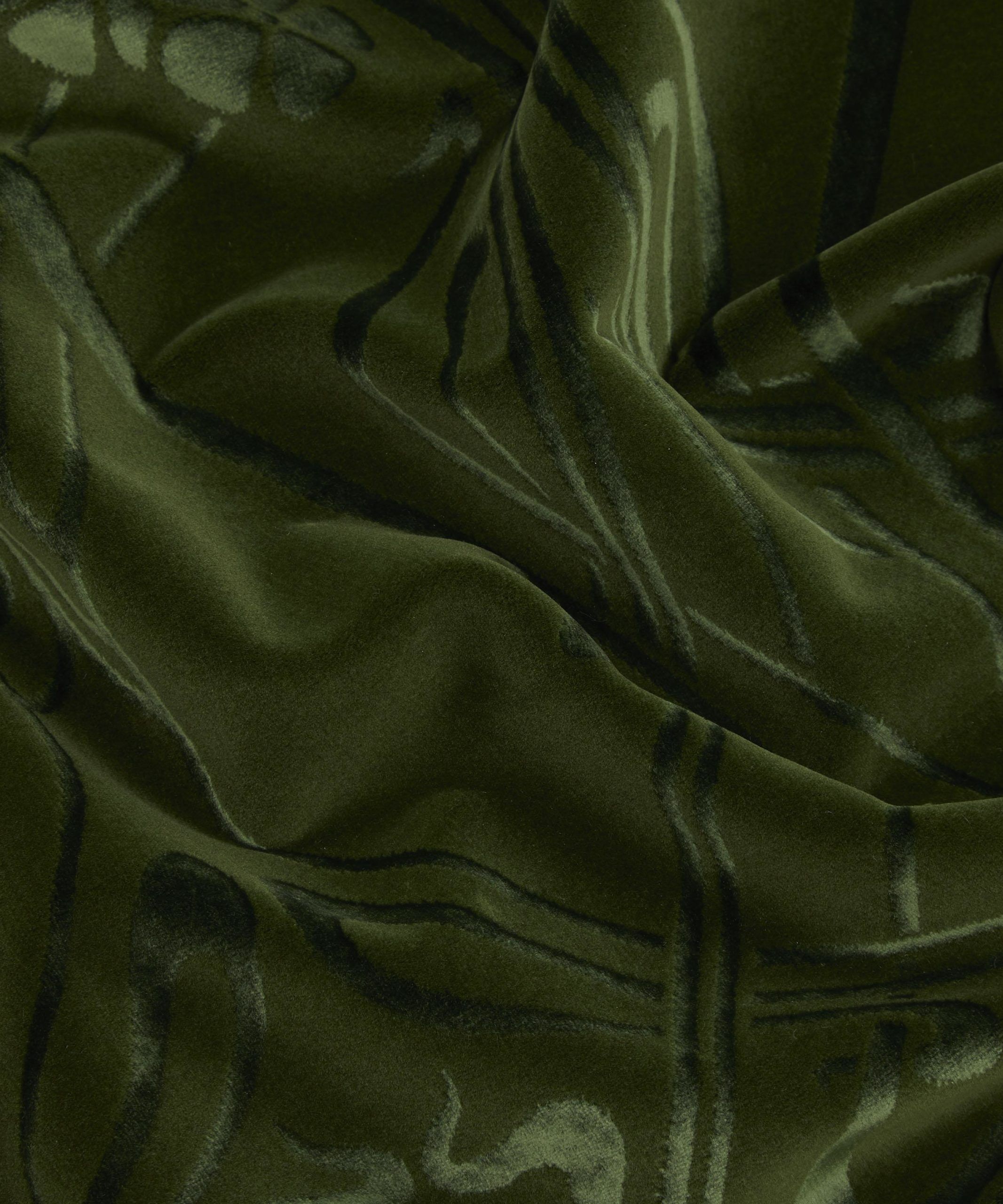 Designed by French artist R. Beauclair in c.1902 and first printed for Liberty in 1967, Ianthe is an iconic example of Art Nouveau design, with its highly stylised flowers arranged into a sinuous layout. It appears on a richly textured mixed-fibre velvet base that’s perfect for high-traffic domestic use. Luxurious in feel and vibrant in colour, this velvet’s elegant drape also makes it ideal for drapery and curtains with blackout or draft-excluding qualities.