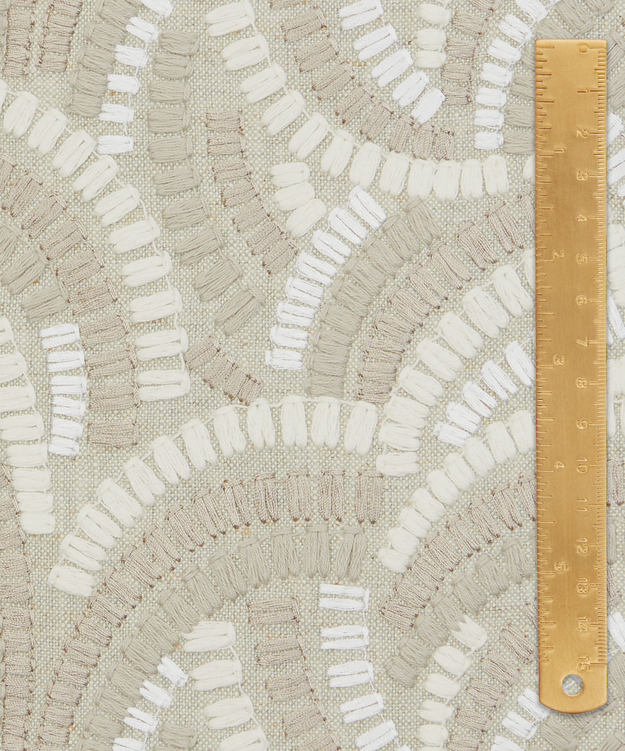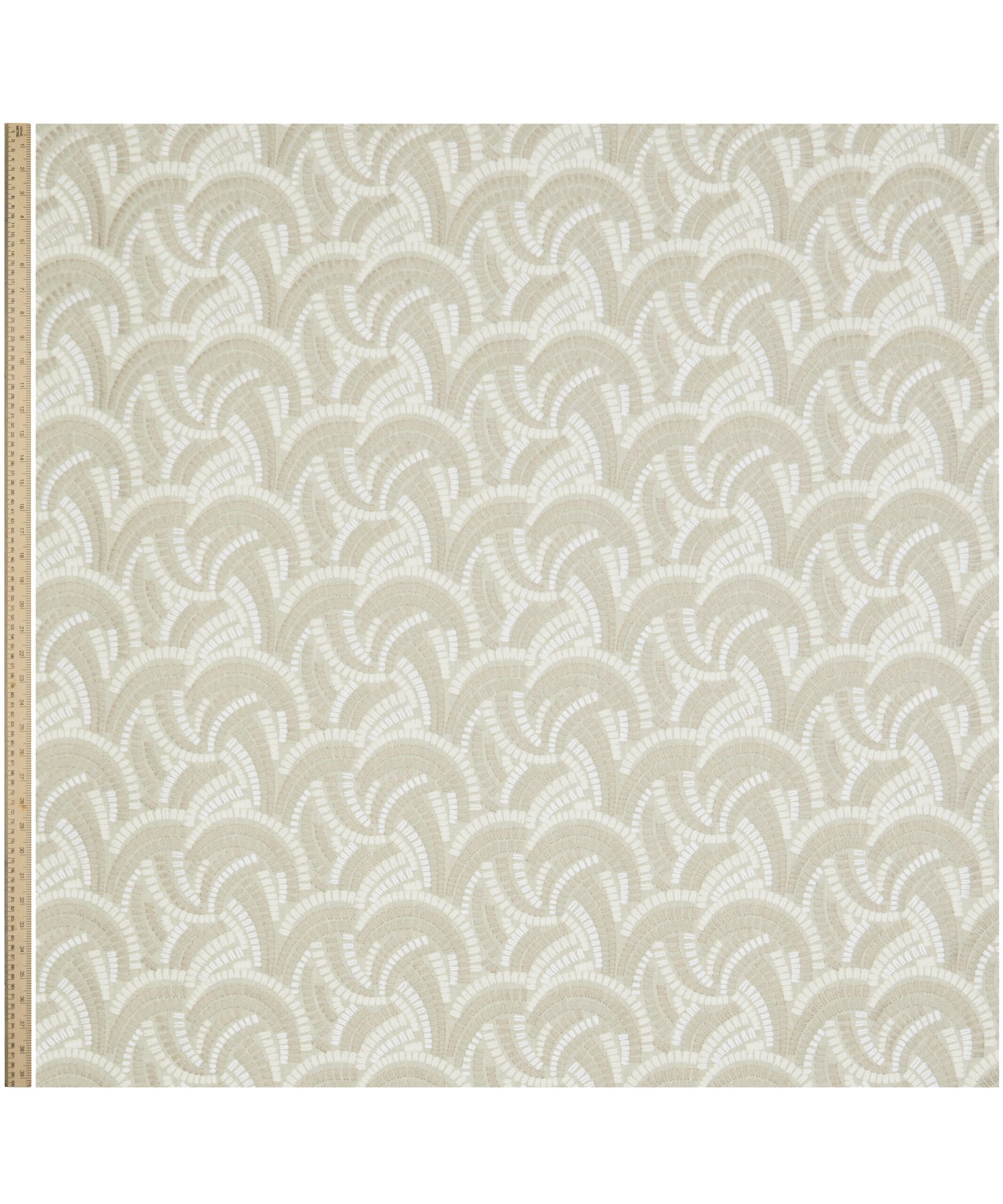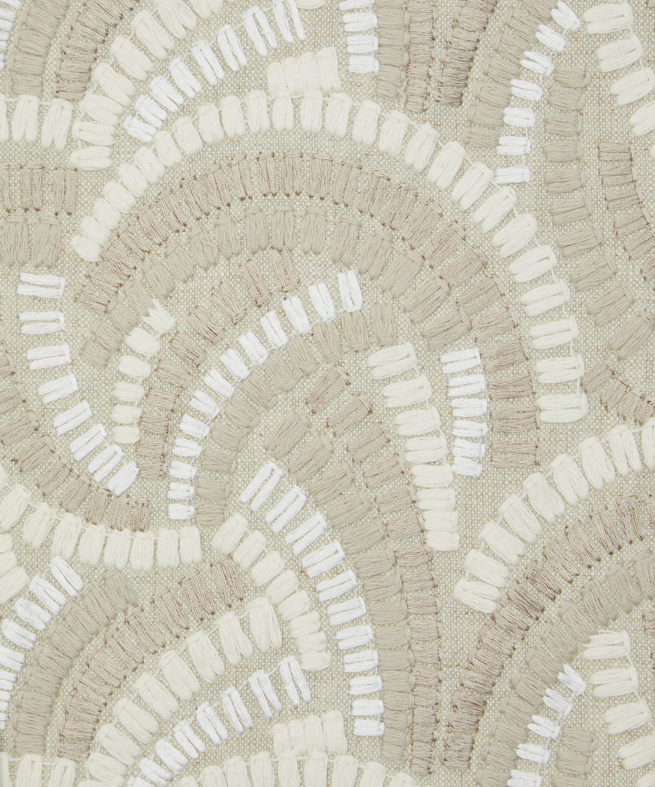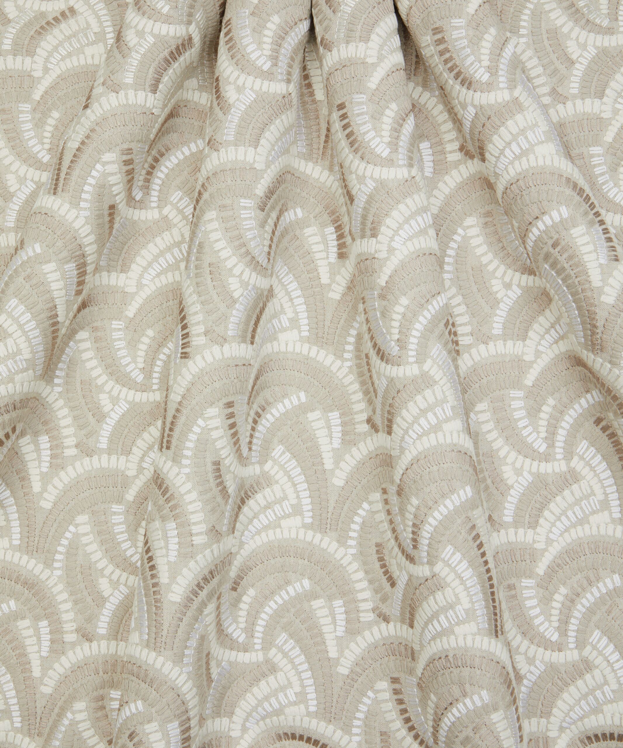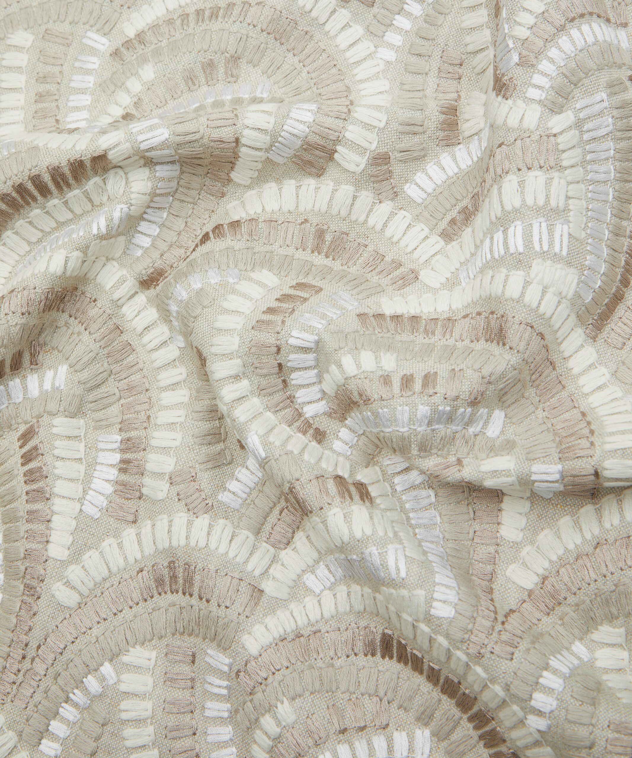 Inspired by Japanese indigo printed textiles, mizuhiki knots, and ancient kimono linings, this wonderfully kinetic pattern was adapted from a hand-painted design created in the Liberty Studio. Beautifully illustrated with dynamic geometry and delicate precision, Kimono Knot’s rhythmic curves display an endless optical illusion of mesmerising movement. Embroidered in India with harmonious tonal colours. Suitable for drapery, cushions, and accessories.
