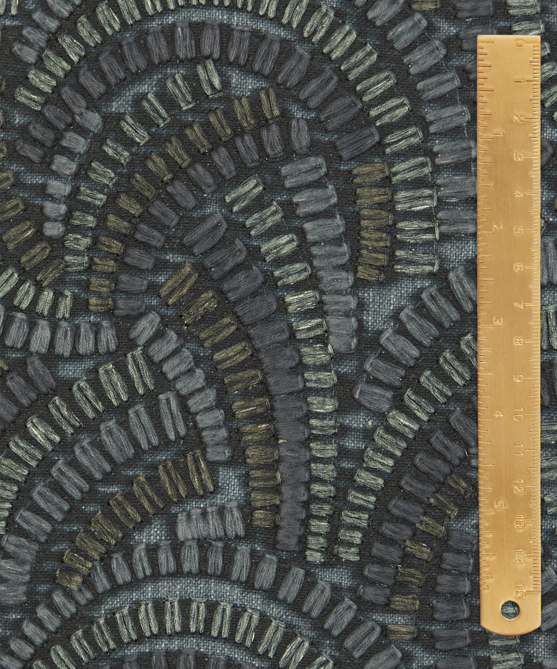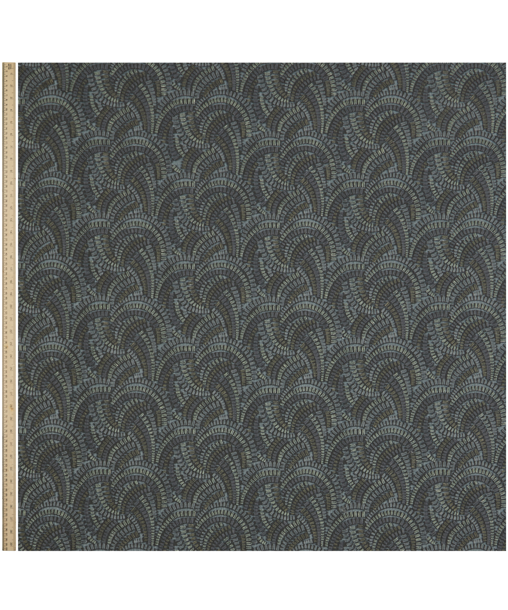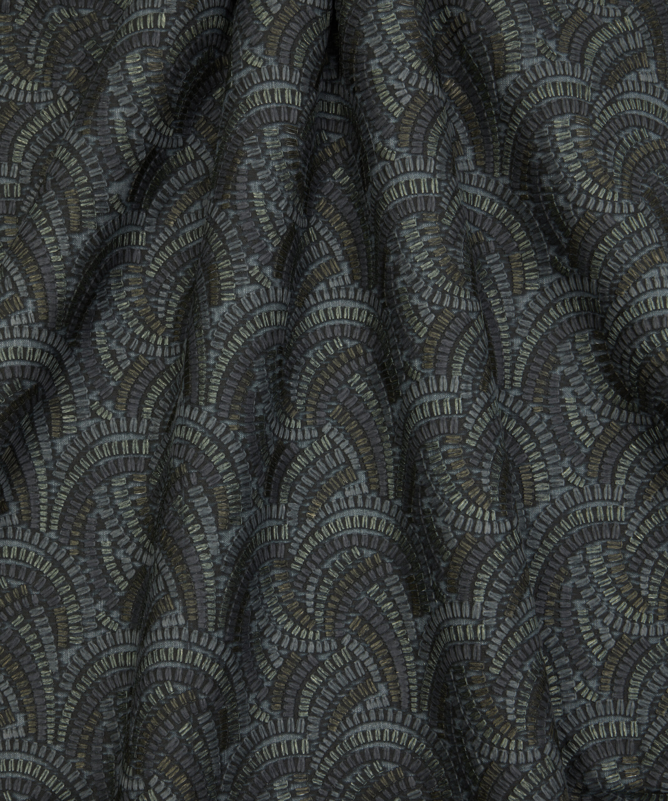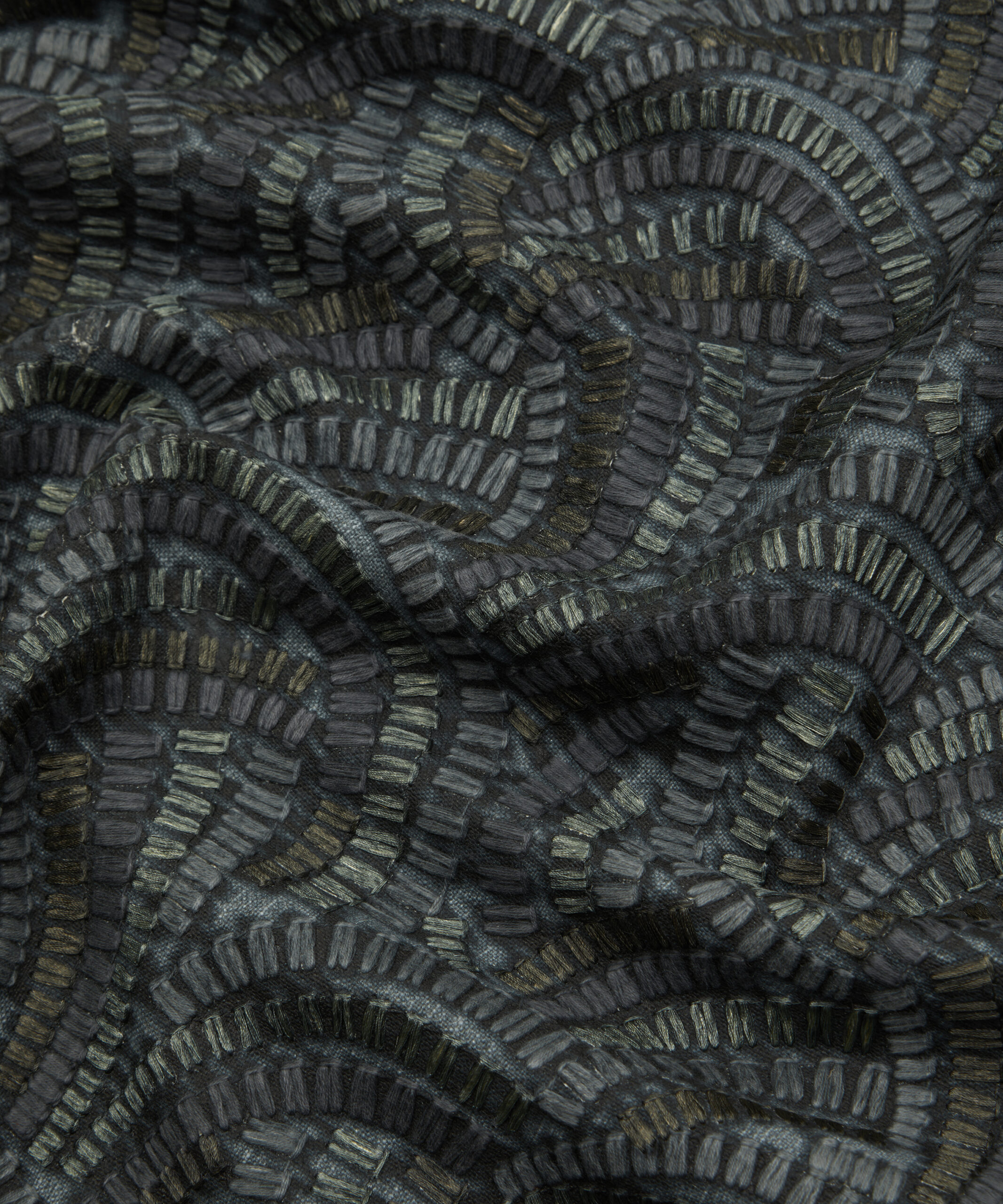 Inspired by Japanese indigo printed textiles, mizuhiki knots, and ancient kimono linings, this wonderfully kinetic pattern was adapted from a hand-painted design created in the Liberty Studio. Beautifully illustrated with dynamic geometry and delicate precision, Kimono Knot’s rhythmic curves display an endless optical illusion of mesmerising movement. Embroidered in India with harmonious tonal colours. Suitable for drapery, cushions, and accessories.