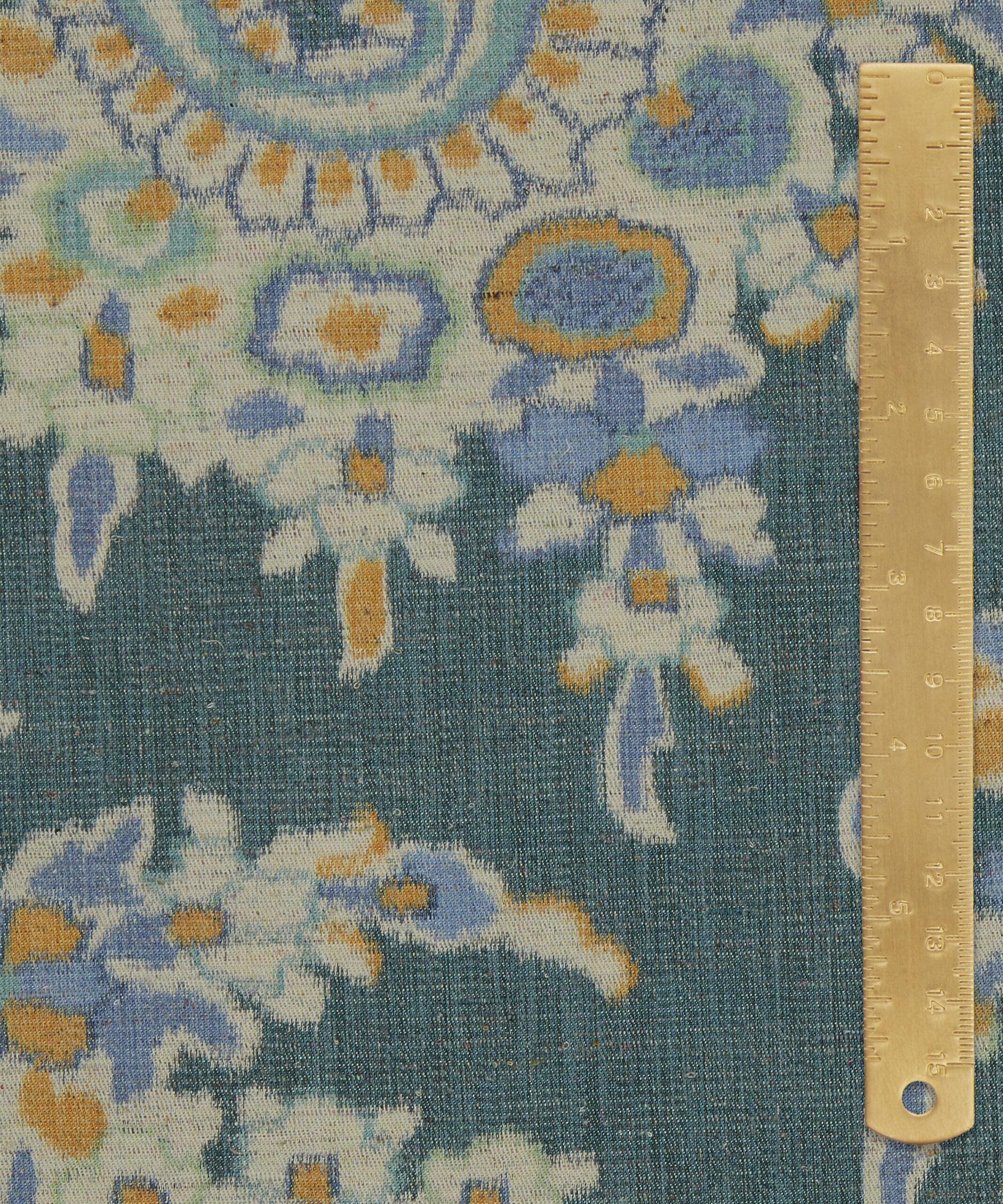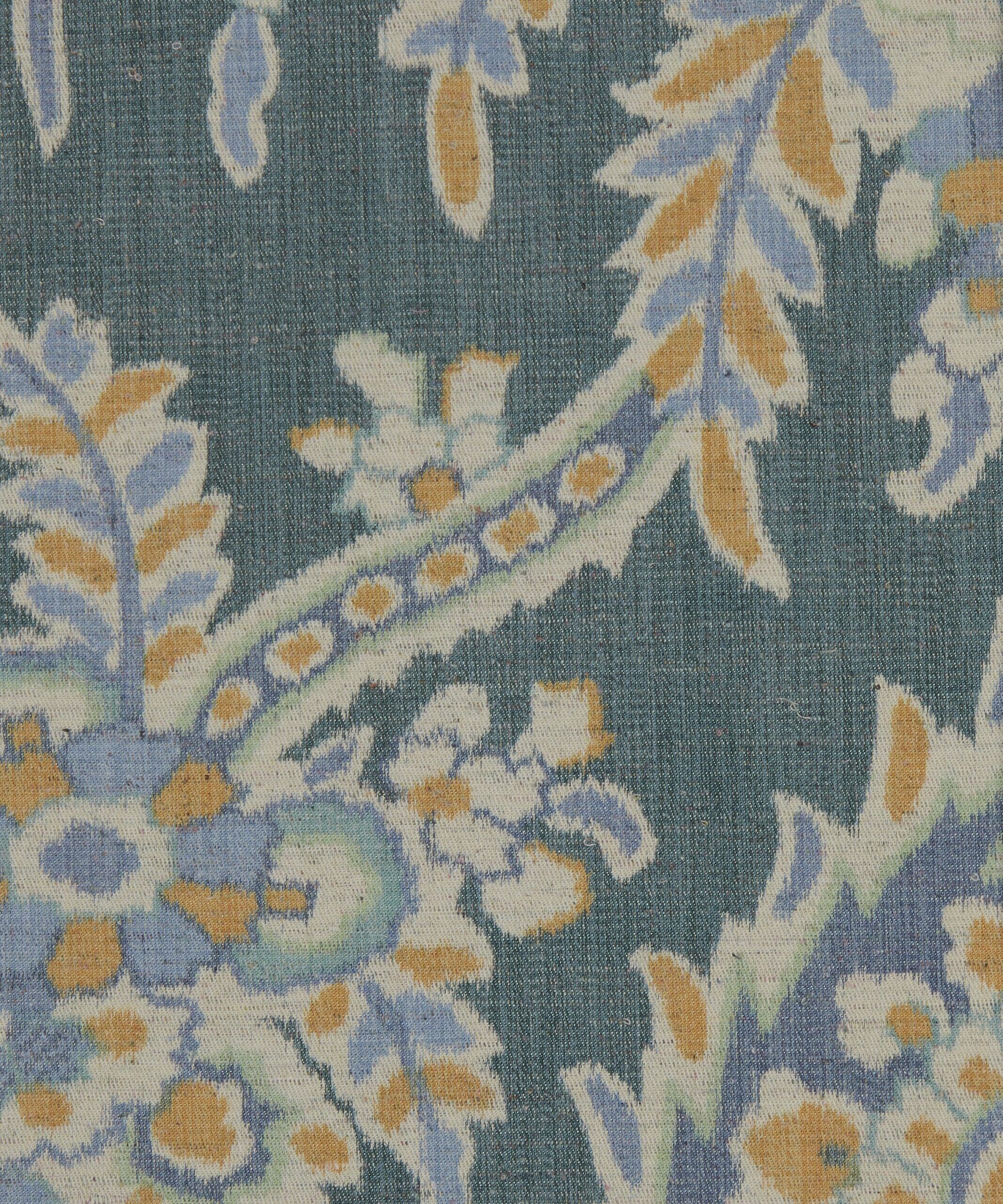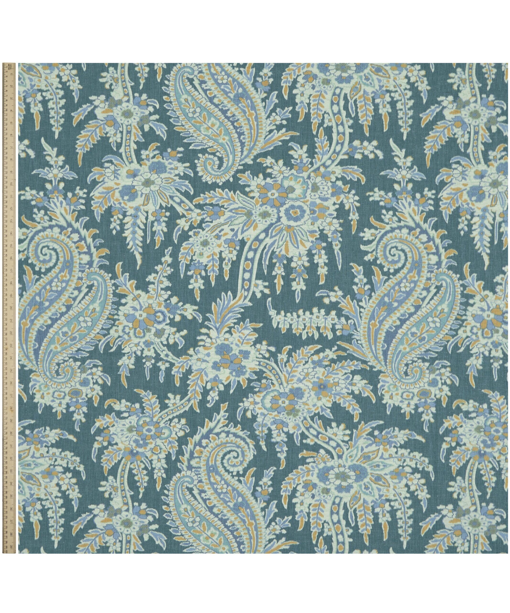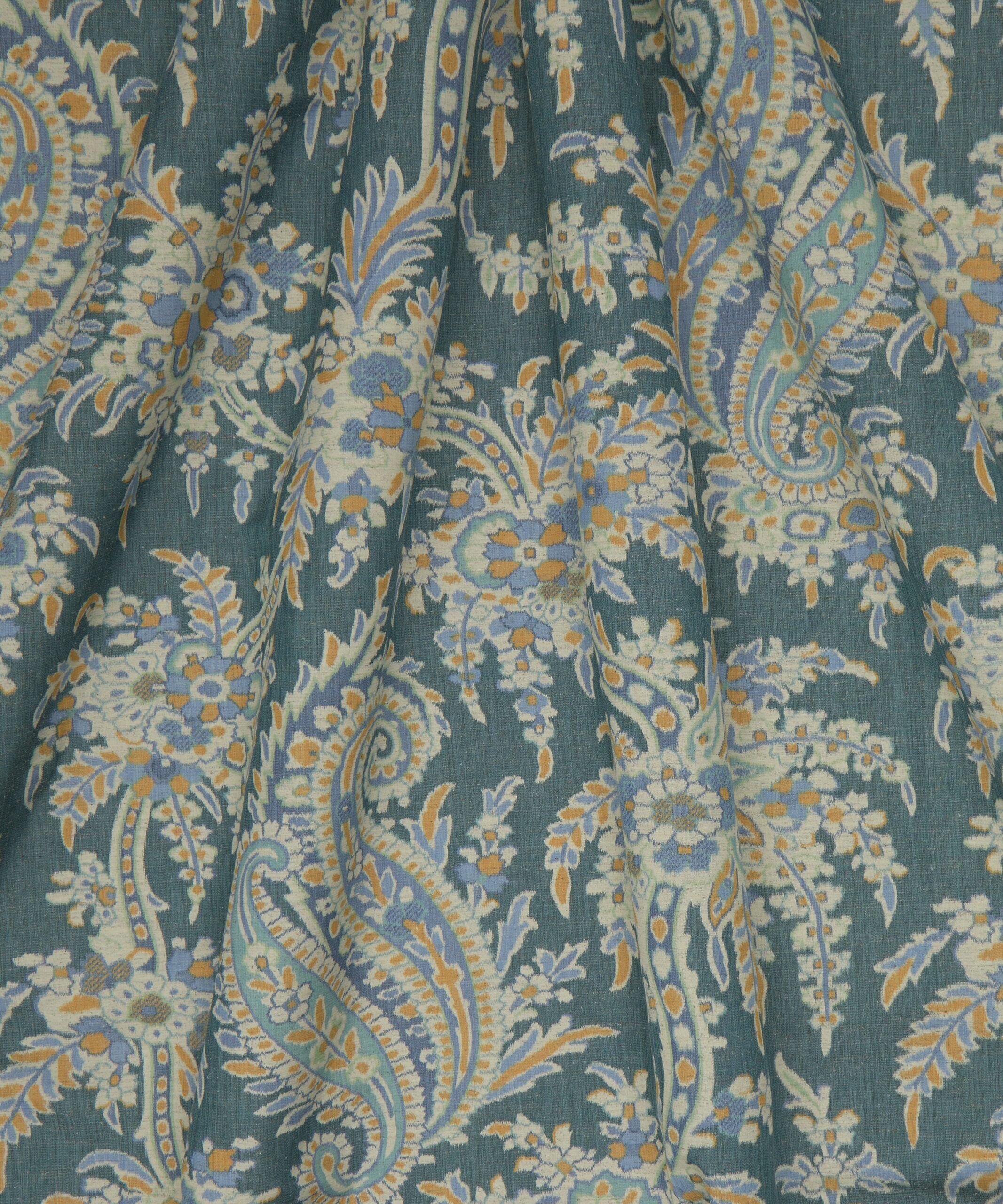 Discovered in one of Liberty’s archival pattern books, Paisley Willow is a weave interpretation of Palm Willow. Carefully redrawn and reimagined to preserve the exquisite intricacy of the original design. This traditional paisley floral, infused with a tropical twist, features an abundant garden of trailing vines, feathery fronds, and jewel-like blossoms, all nestled among elegant boteh paisleys. Crafted from Tana Reborn Eve, an innovative approach to transforming surplus fabrics. Paisley Willow is warp printed on a 20% recycled cotton, offering a blurred ikat effect, suitable for drapery and cushions.