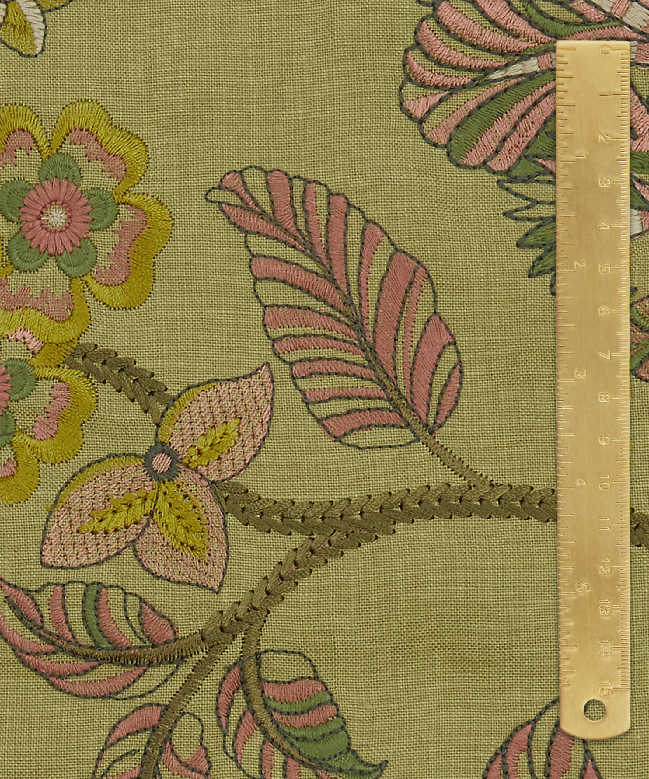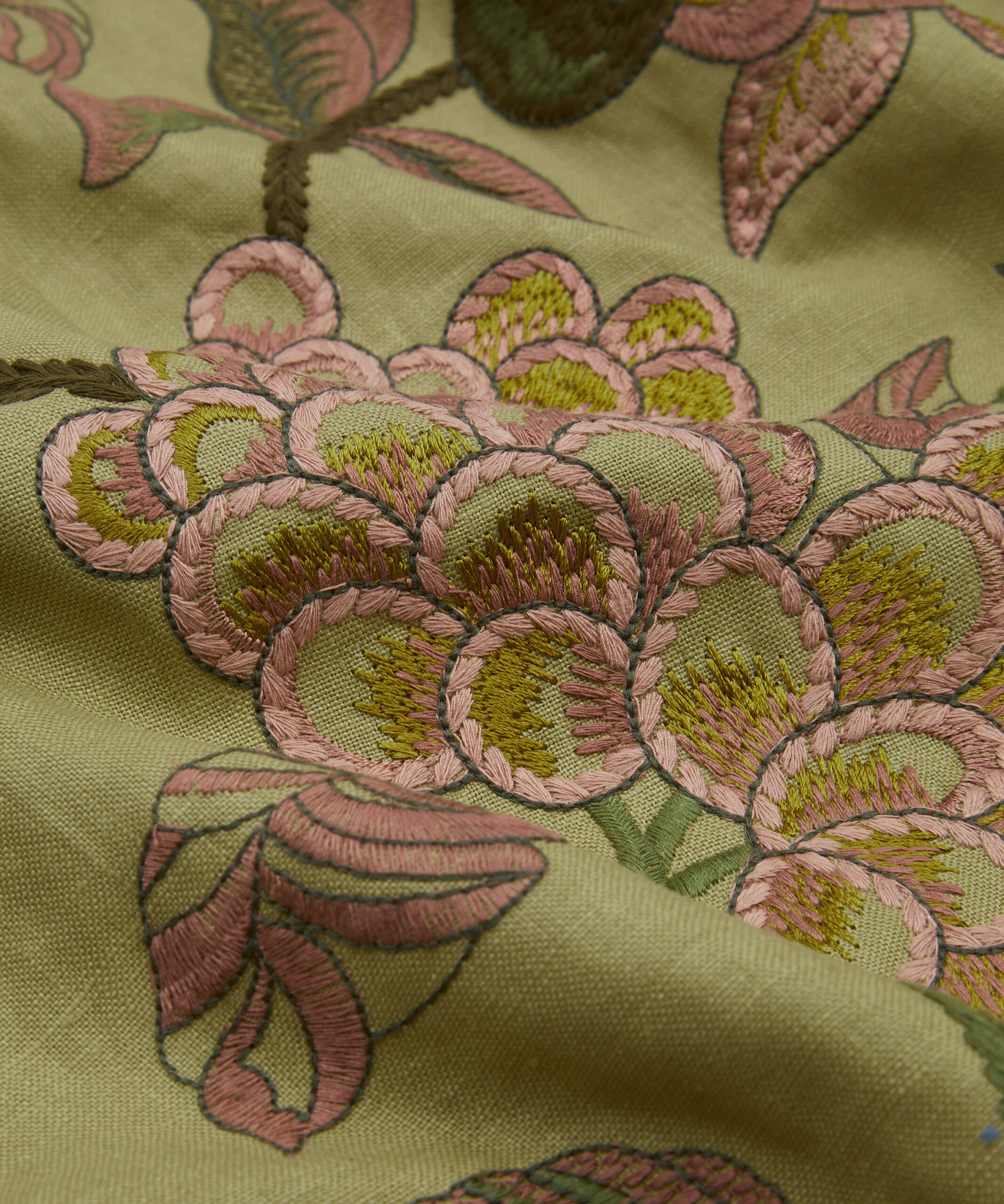 Taken from an antique Tree of Life design within the Liberty archive, Palampore Embroidery has historically appeared as a best-selling scarf design. For this collection, the Liberty Design Studio have lovingly reworked the original artwork into a simpler composition to enhance the striking floral motifs. Embroidered in India by master craftsmen, the design has been imagined into three colourways. With subtle mineral-like lustre and tonal richness, these colour stories are reminiscent of the exquisite plant and insect dyes that originally inspired the design. Suitable for drapery, cushions, and accessories.