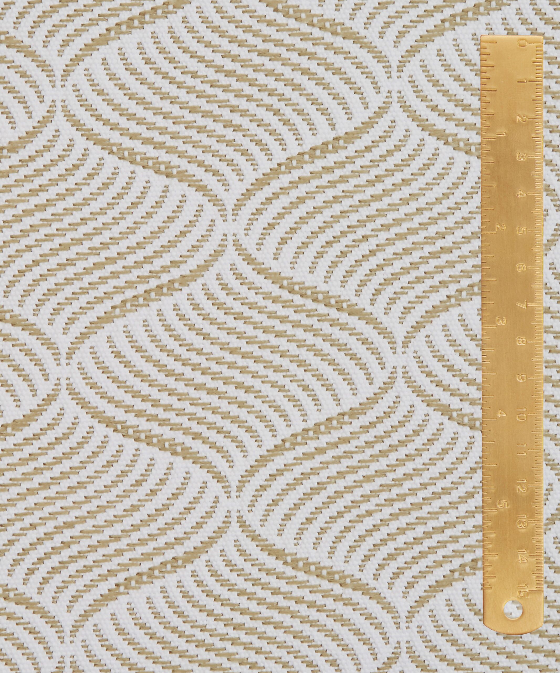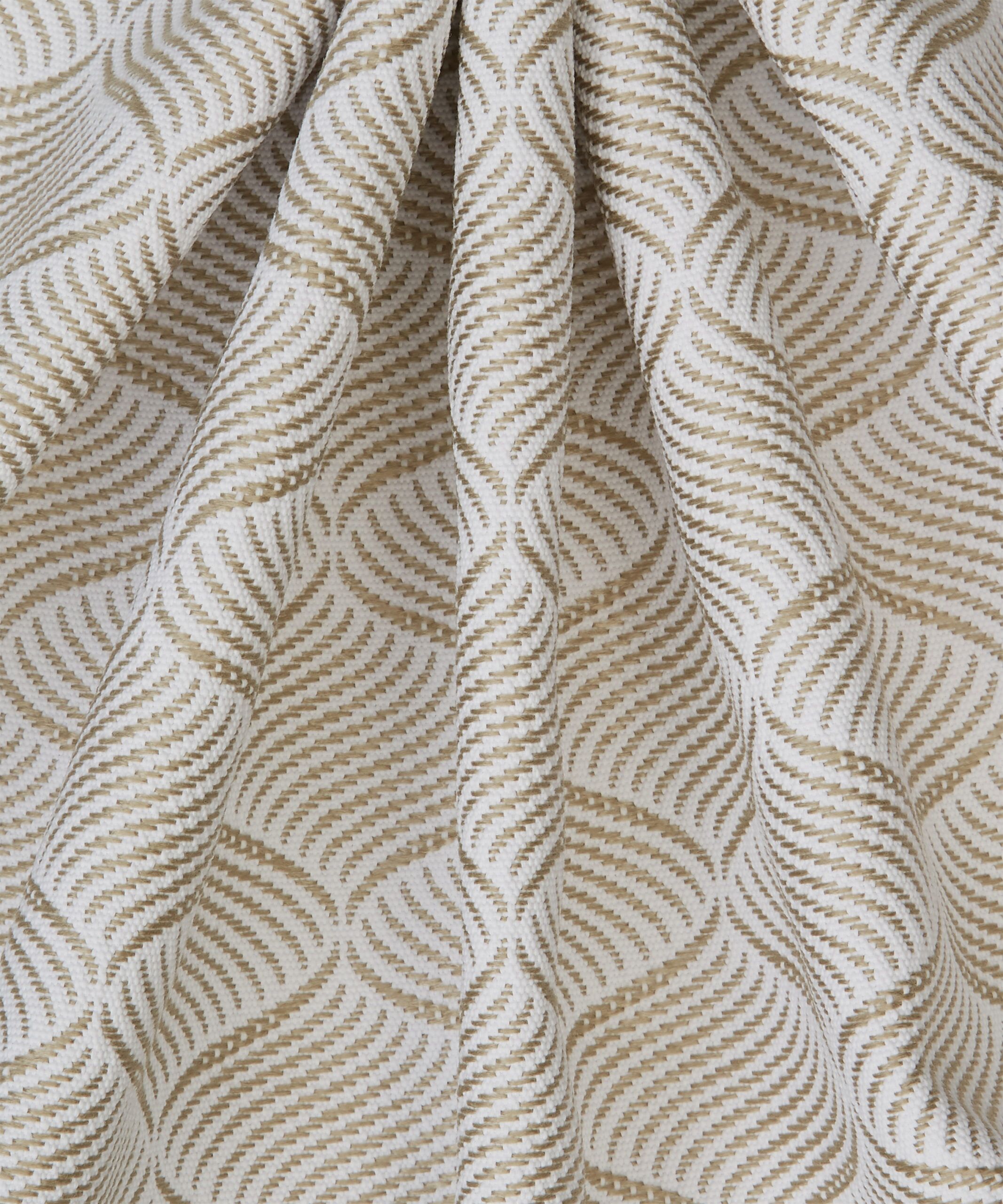 Based on a tiny piece of woven Liberty fabric dating from the 1890s, Palazzo has been revived and reconstructed exclusively for outdoor furnishing fabrics. This undulating geometric features a wavy diagonal check, arranged in an elegant ogee layout. Developed from a silk jacquard in archive, it is translated into a tone-on-tone, yarn-dyed mid-scale geometric.
