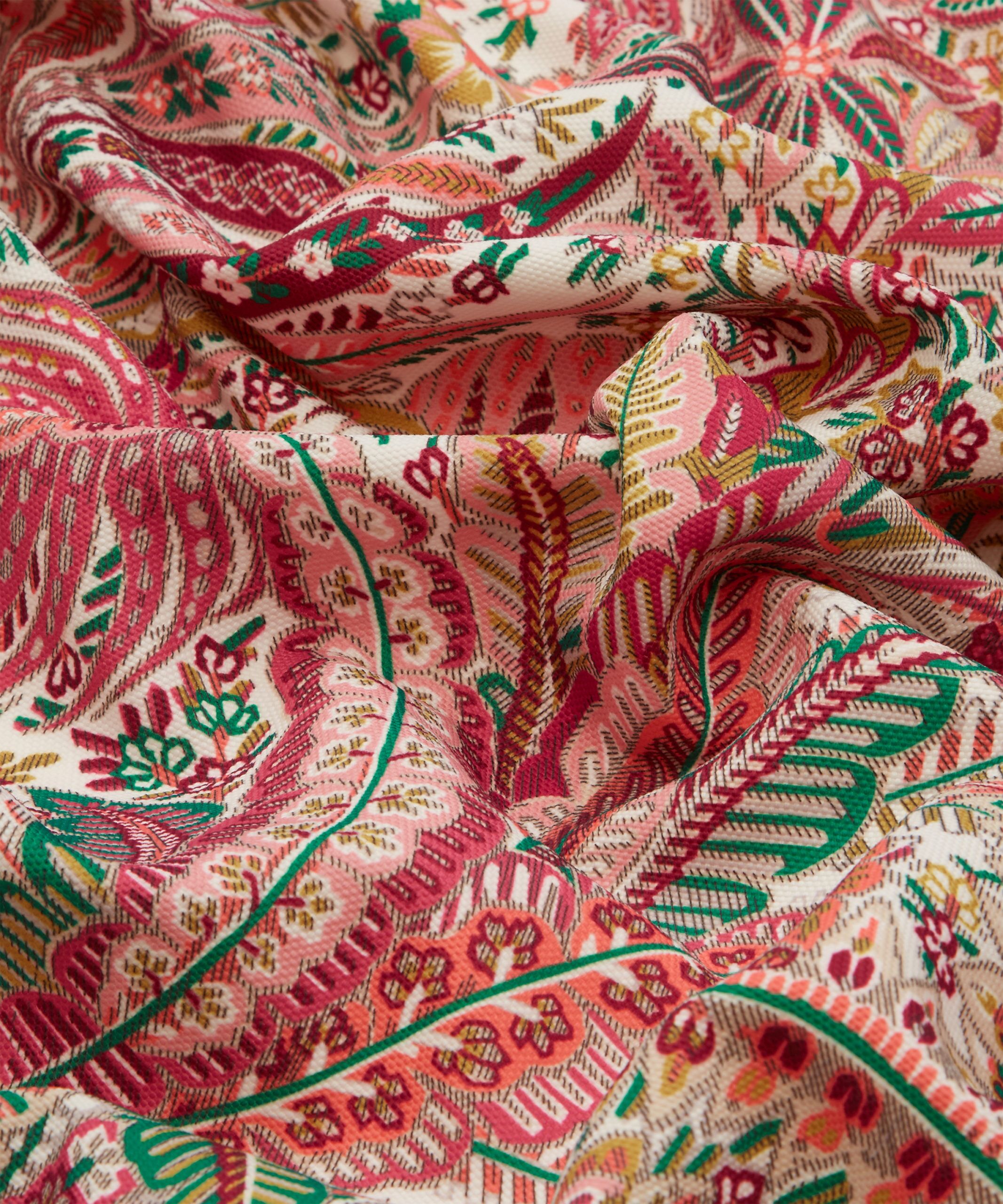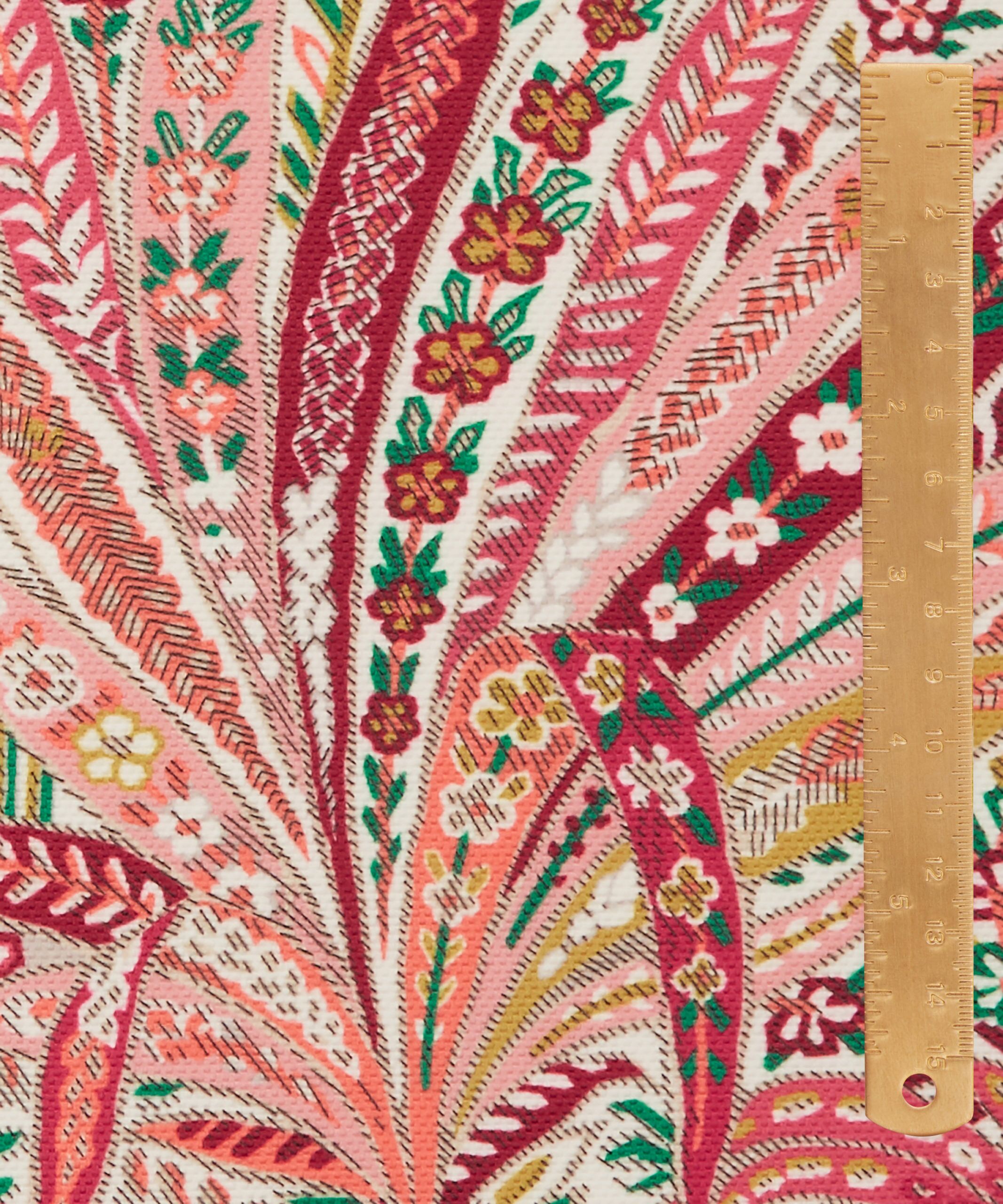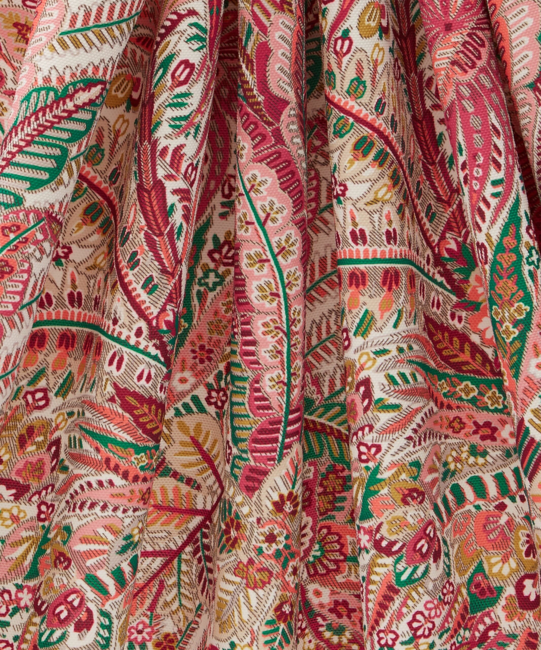 Inspired by a collection of archival hand-painted shawl designs dating from the mid-19th century, Persian Voyage is the latest interpretation of a much-beloved Liberty classic. This striking version is re-engineered as a sumptuous heavyweight weave – woven in Italy using the highest quality yarns, to bring sumptuous texture and surface effect to the collection.
