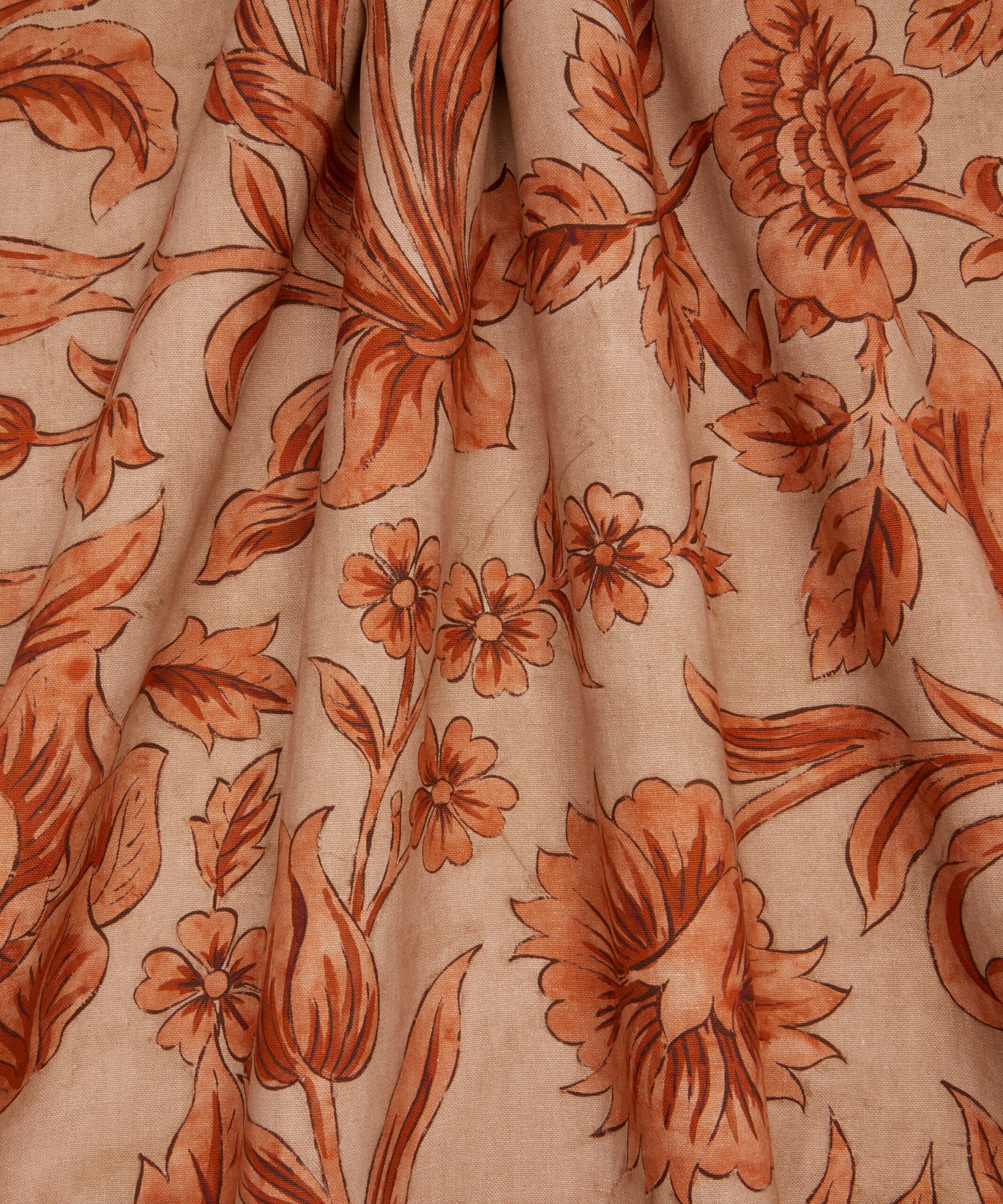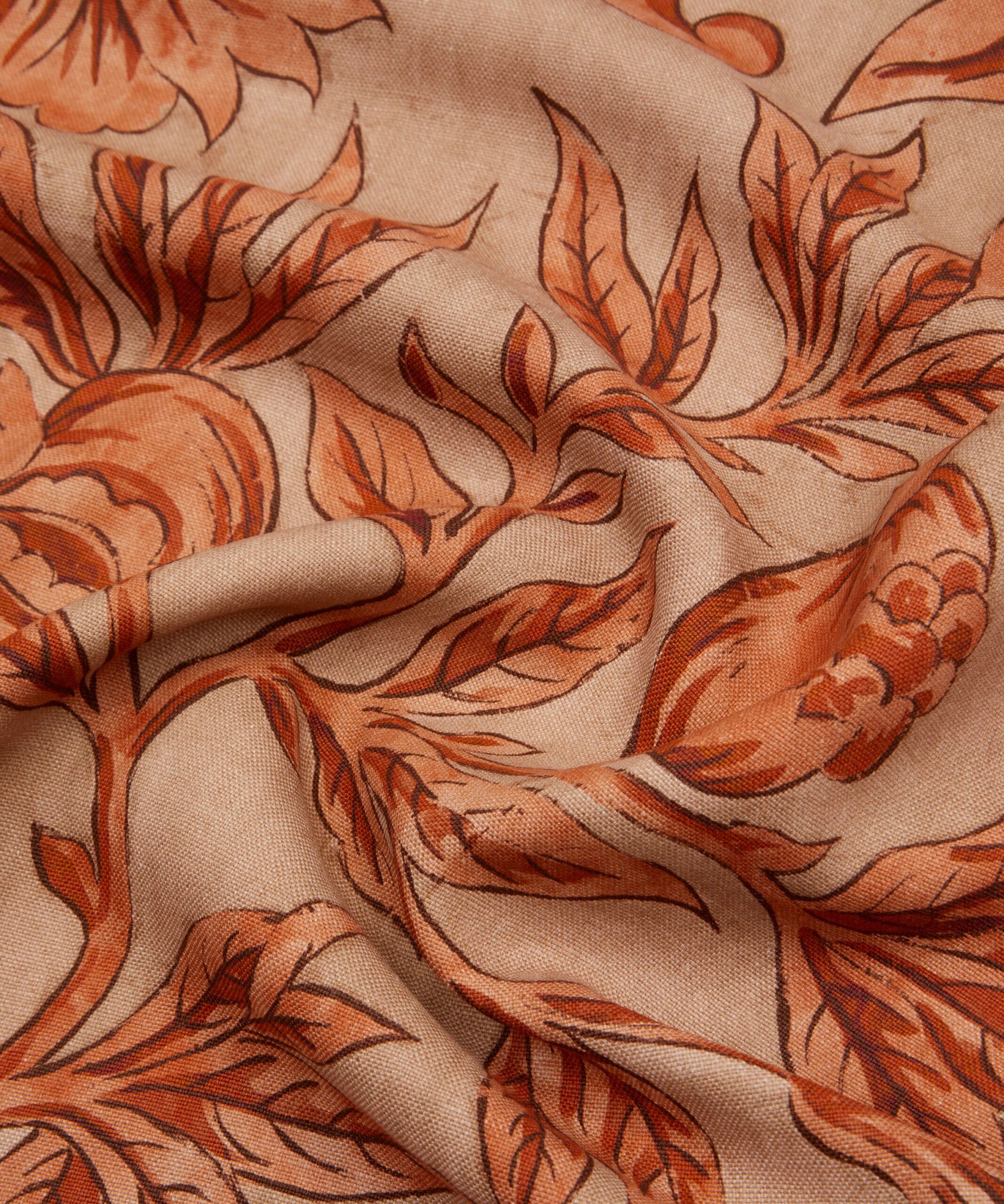 Roses, lilies, tulips, dianthuses, and pomegranates hide amongst Sambourne Vine’s ornamental trailing foliage. Originally created for Liberty in 1971 as a hand-painted artwork, the Liberty Design Studio have repainted this design into a new dramatic large-scale piece, with bold expressive brush strokes. Printed on a luxurious 100% linen, Sambourne Vine has an exceptional weight and drape and is suitable for upholstery, drapery, cushions, and accessories.