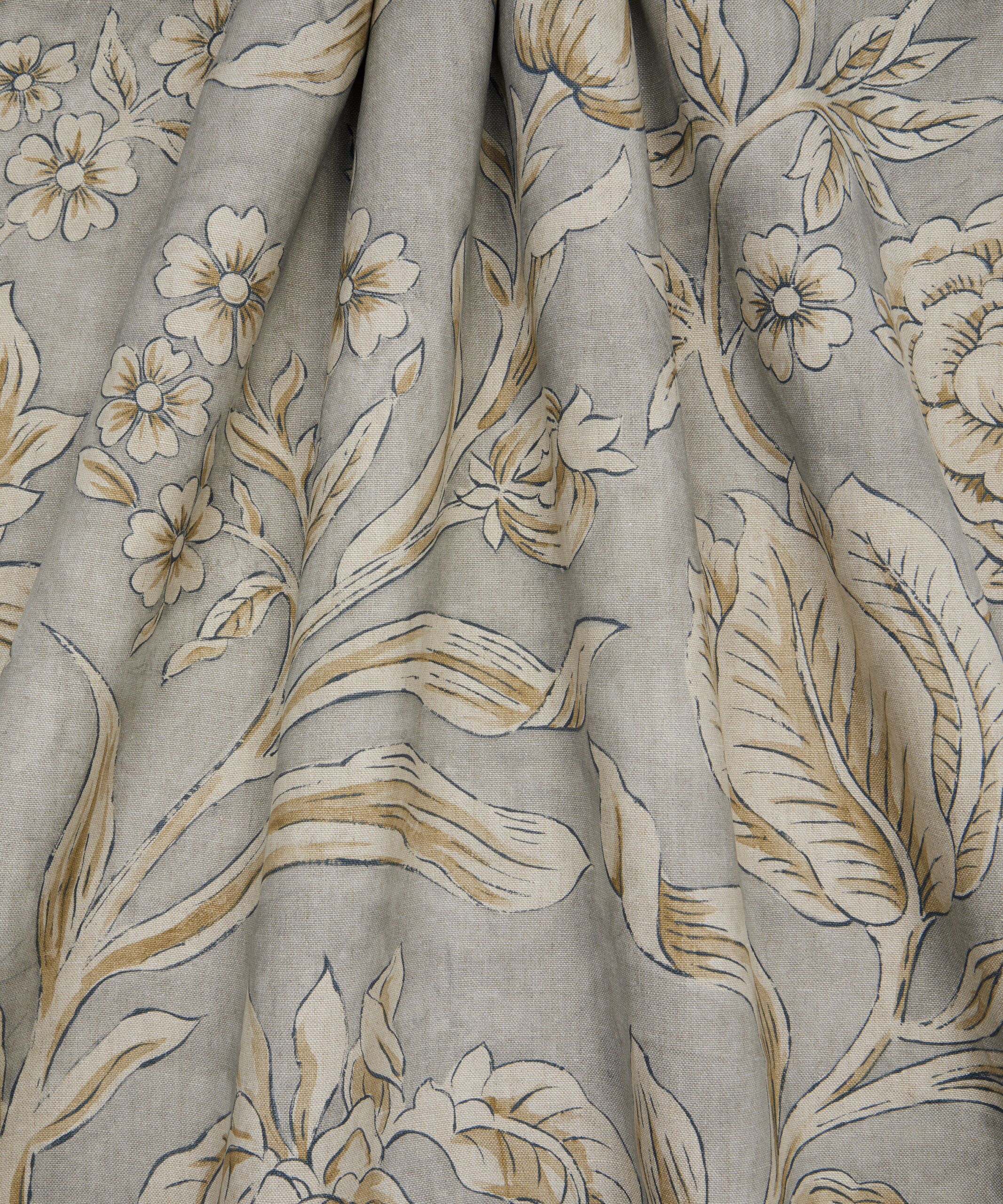 Roses, lilies, tulips, dianthuses, and pomegranates hide amongst Sambourne Vine’s ornamental trailing foliage. Originally created for Liberty in 1971 as a hand-painted artwork, the Liberty Design Studio have repainted this design into a new dramatic large-scale piece, with bold expressive brush strokes. Printed on a luxurious 100% linen, Sambourne Vine has an exceptional weight and drape and is suitable for upholstery, drapery, cushions, and accessories.