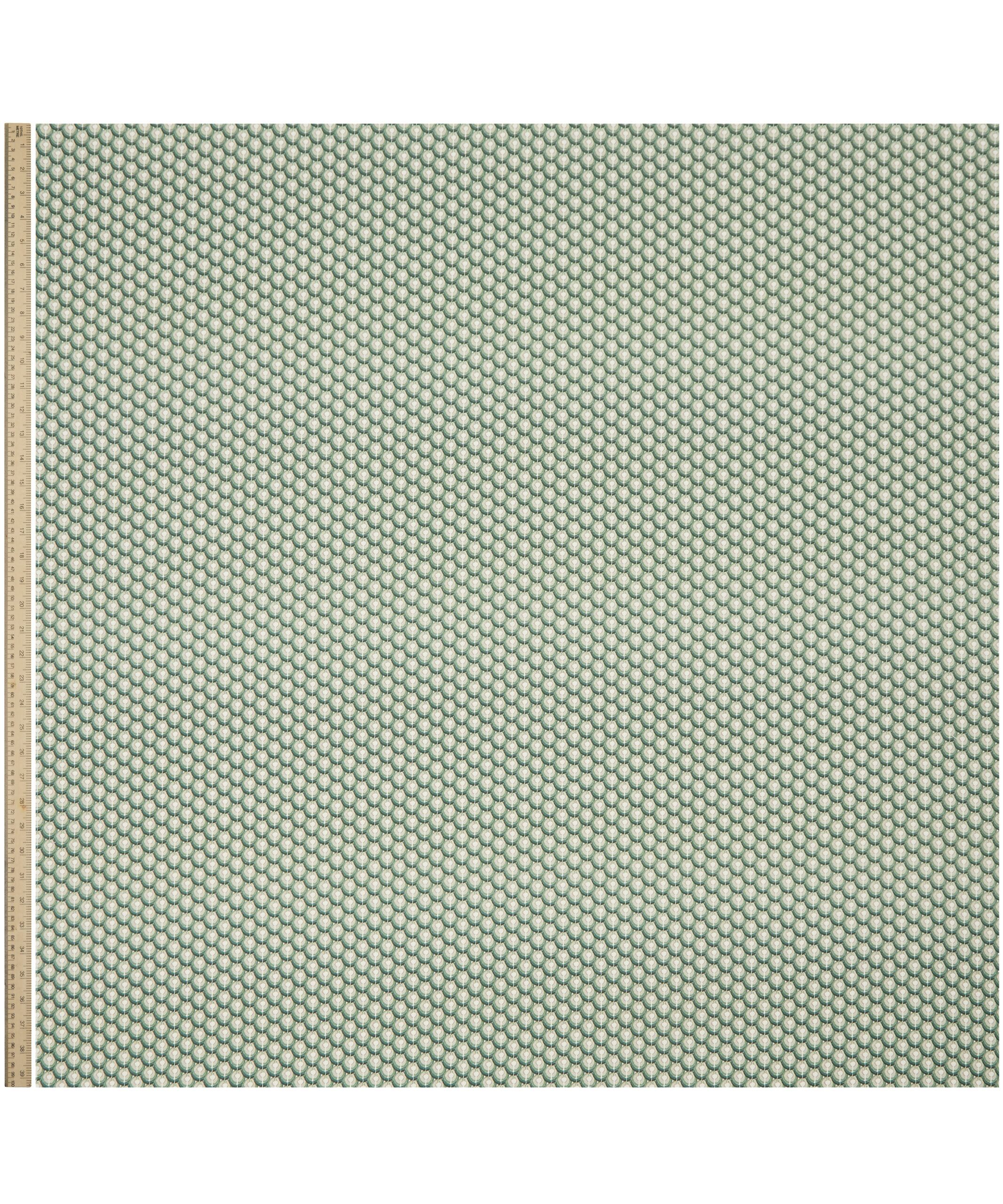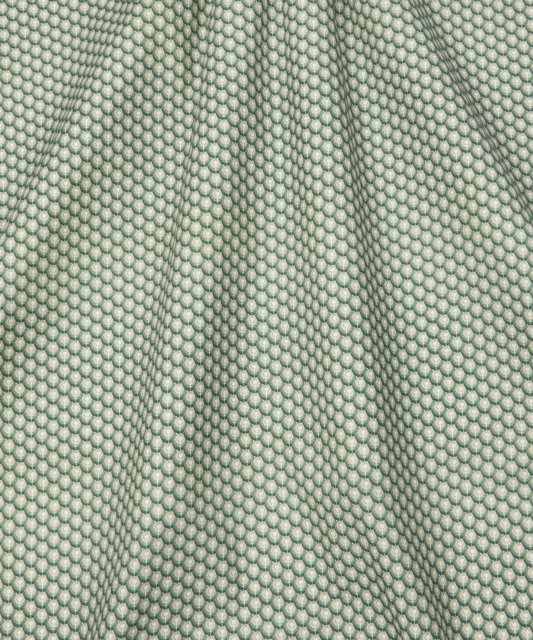 Inspired by the iconic markings of regal peacock feathers, this all-over geometric design was originally drawn with the decisive mark-making of oil pastels, providing a hand-drawn aesthetic to an otherwise graphic print.