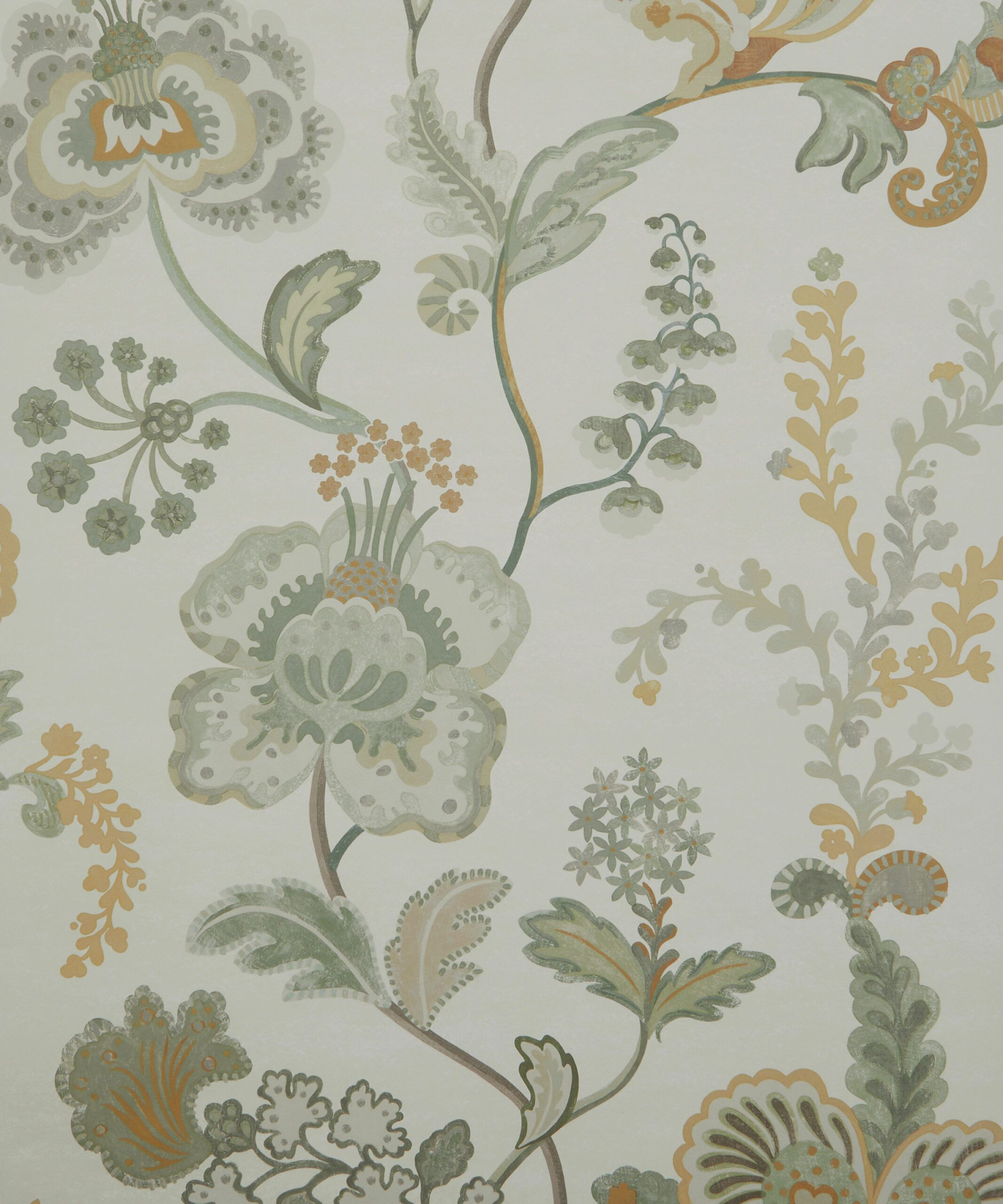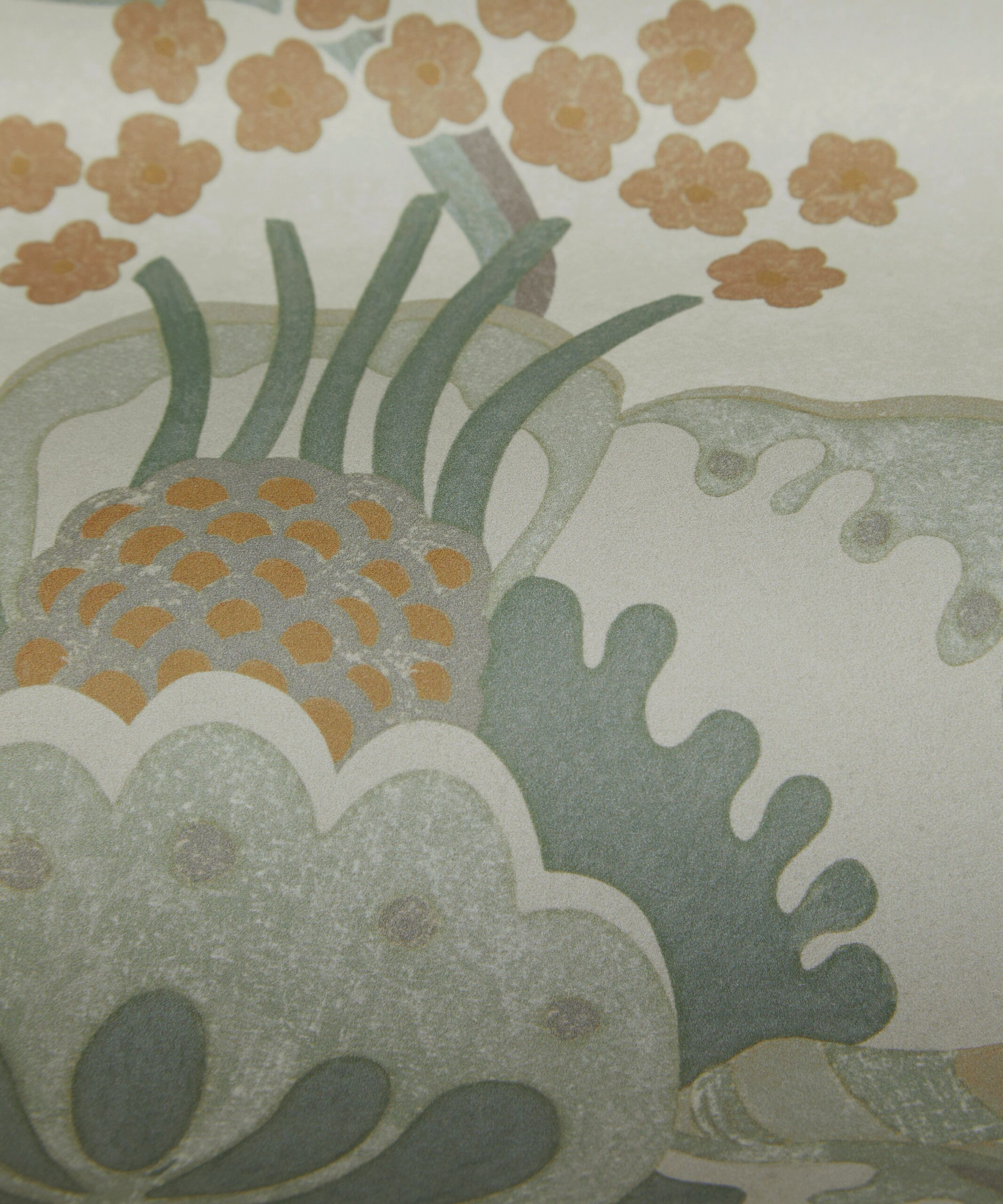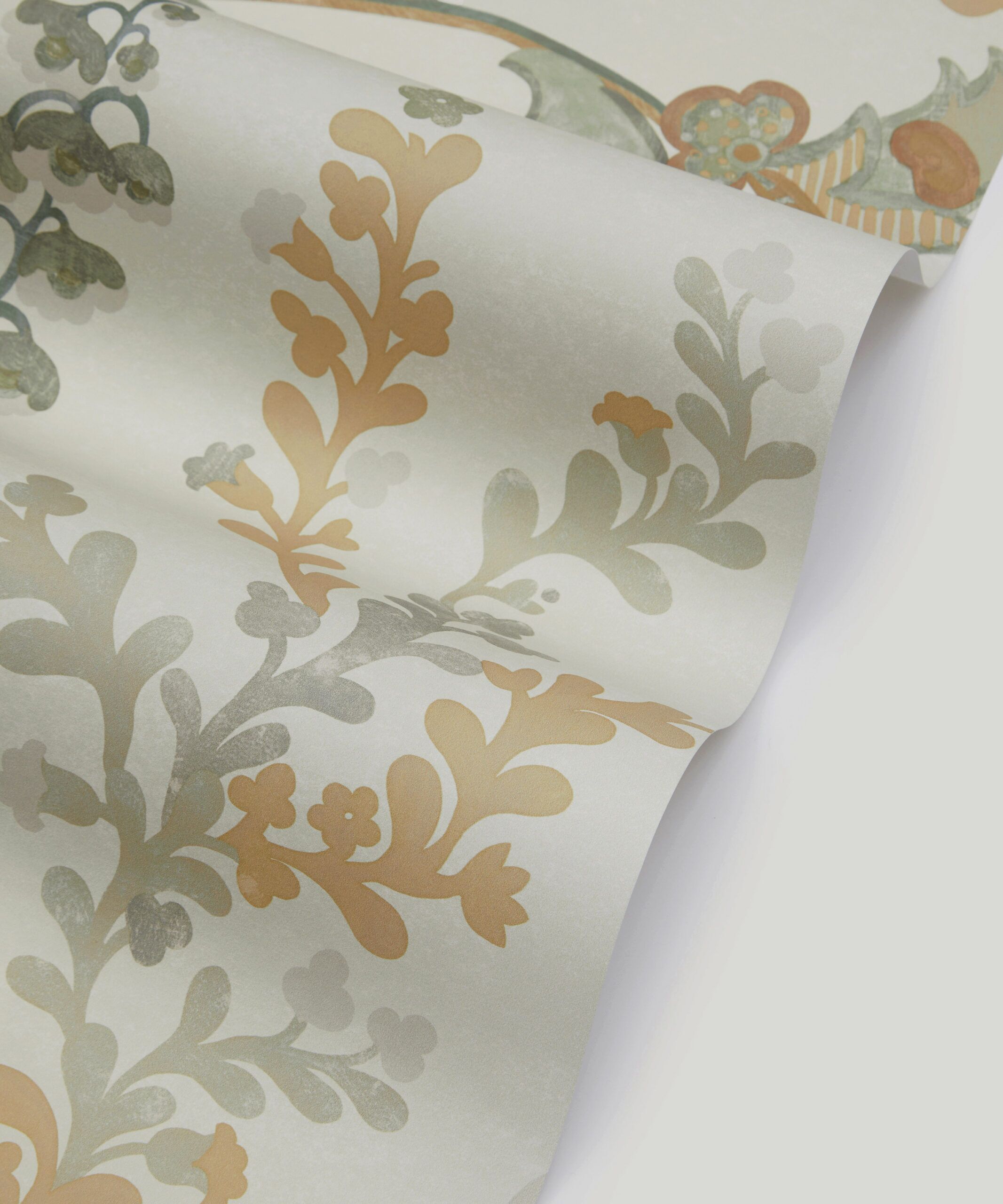 Brimming with organic movement and natural rhythm, Symphony Trail draws inspiration from stylised impressions of alpine plants, including rock jasmine, edelweiss, and pink campion. Hand-painted in the Liberty design studio, the original artwork has been skilfully reworked into a trailing, Tree of Life-style layout. Printed on a matt-quality paper to enhance the painting’s original details, the artwork has been lightly sanded to give the impression of a fresco mural. Appearing in three unique colourways, the design’s oversized, fantastical flowers and ornamental foliage are depicted with subtle handcrafted textures, highlighting the design’s refined, sculptural aesthetic.