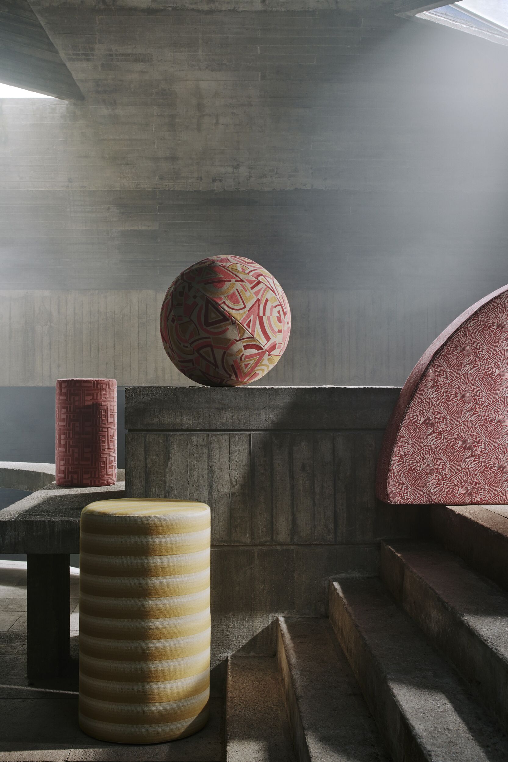 In collaboration with expert textile mills in Italy, Belgium, and India, the subtle textures and details from the artwork have been carefully translated into a beautiful array of woven, embroidered, and printed fabrics. From surprising geometrics, lively abstractions, and rhythmic lines, this innovative Interiors collection combines the designer’s artistic sensibilities with expert craftsmanship.