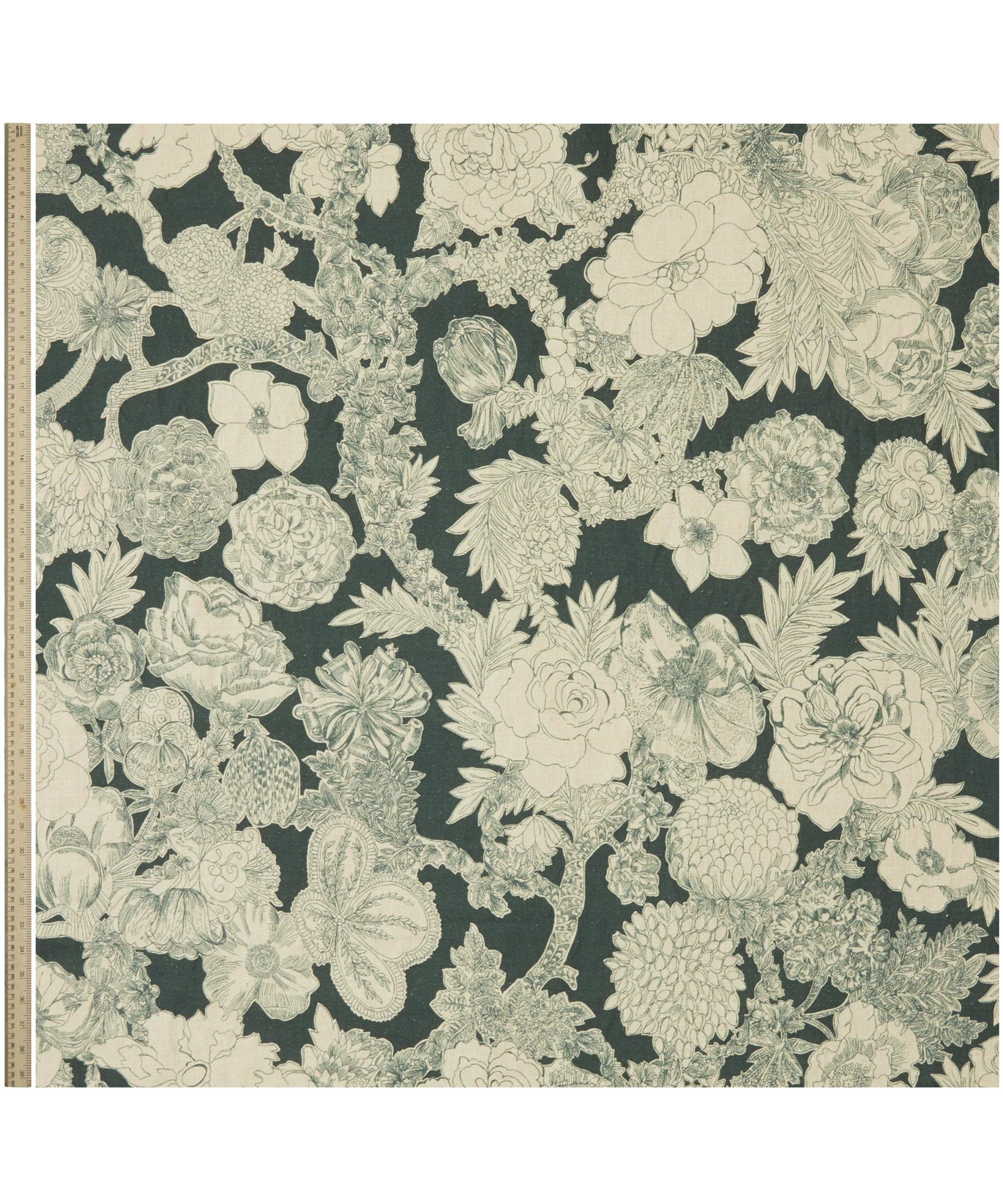 Zennor Arbour was created in the Liberty Fabrics design studio, formed from original pencil sketches of flowers that build into a widely branching rose tree. Floral elements of the original appear here reimagined in a mono-coloured interpretation. The design is expertly printed in Italy onto our Ladbroke linen – a beautiful heavyweight base created from pure linen. Ladbroke linen has an excellent drape due to its superior weight, and is also well-suited for use in domestic upholstery. The fine weave allows a beautiful print interpretation.